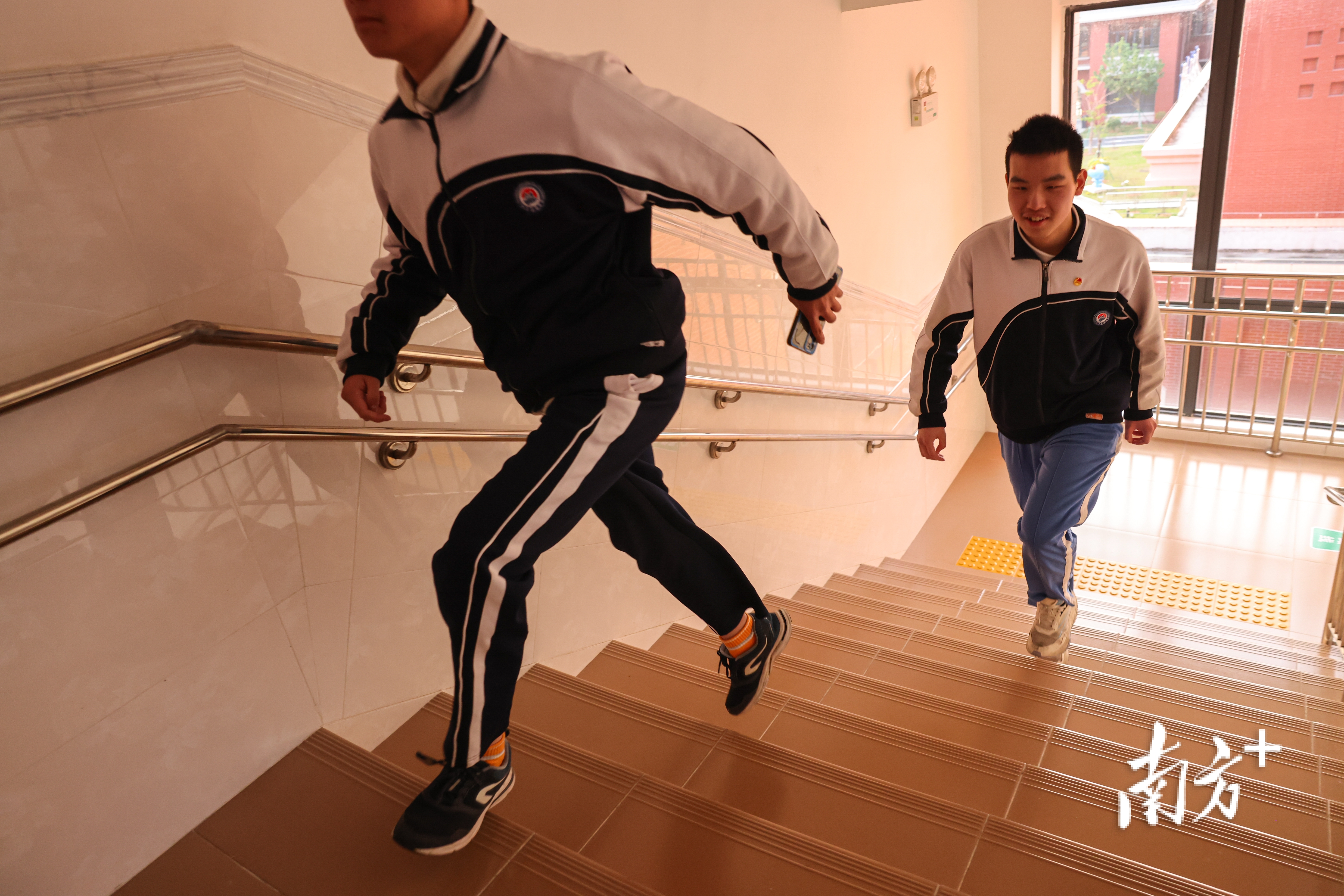2025年4月1日,广州市启明学校,方健坤和江健回宿舍。学生们在熟悉的校园中都是健步如飞,即使他们看不清外界。