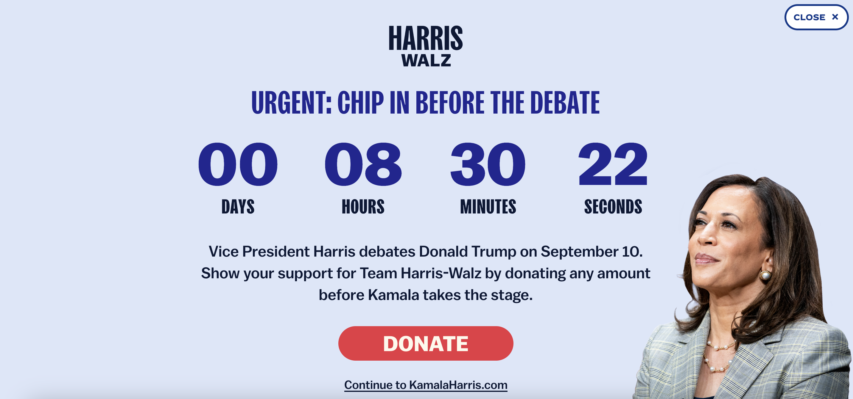 此前,哈里斯团队的竞选网站仅有捐款页面。