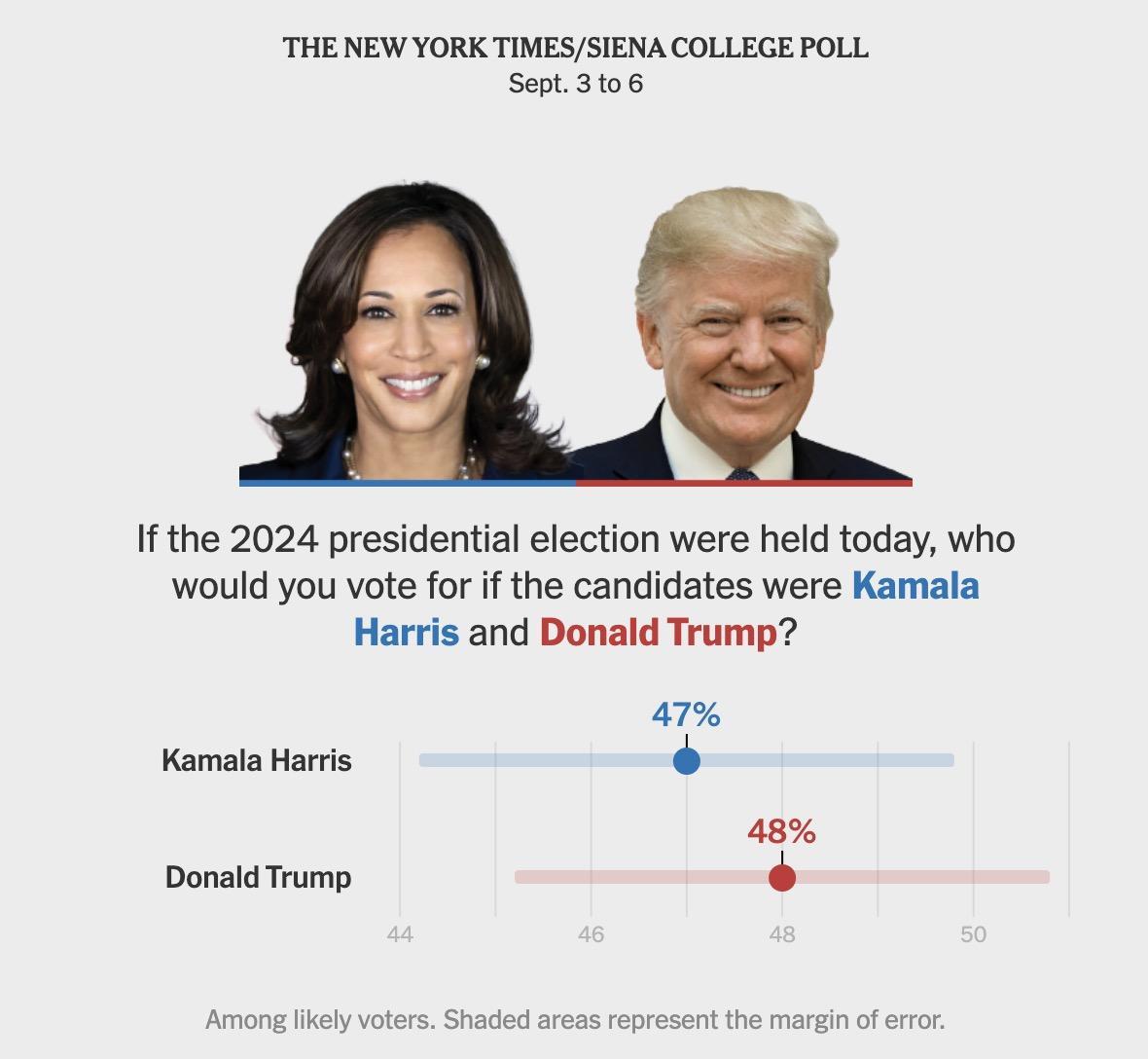 当地时间9月8日,在一家美媒和锡耶纳学院对可能的投票选民进行的一项全国民意调查中,多数受调选民表示,对国家来说,两人都是“冒险的选择”。60%的受调选民认为,美国正在朝错误的方向前进。