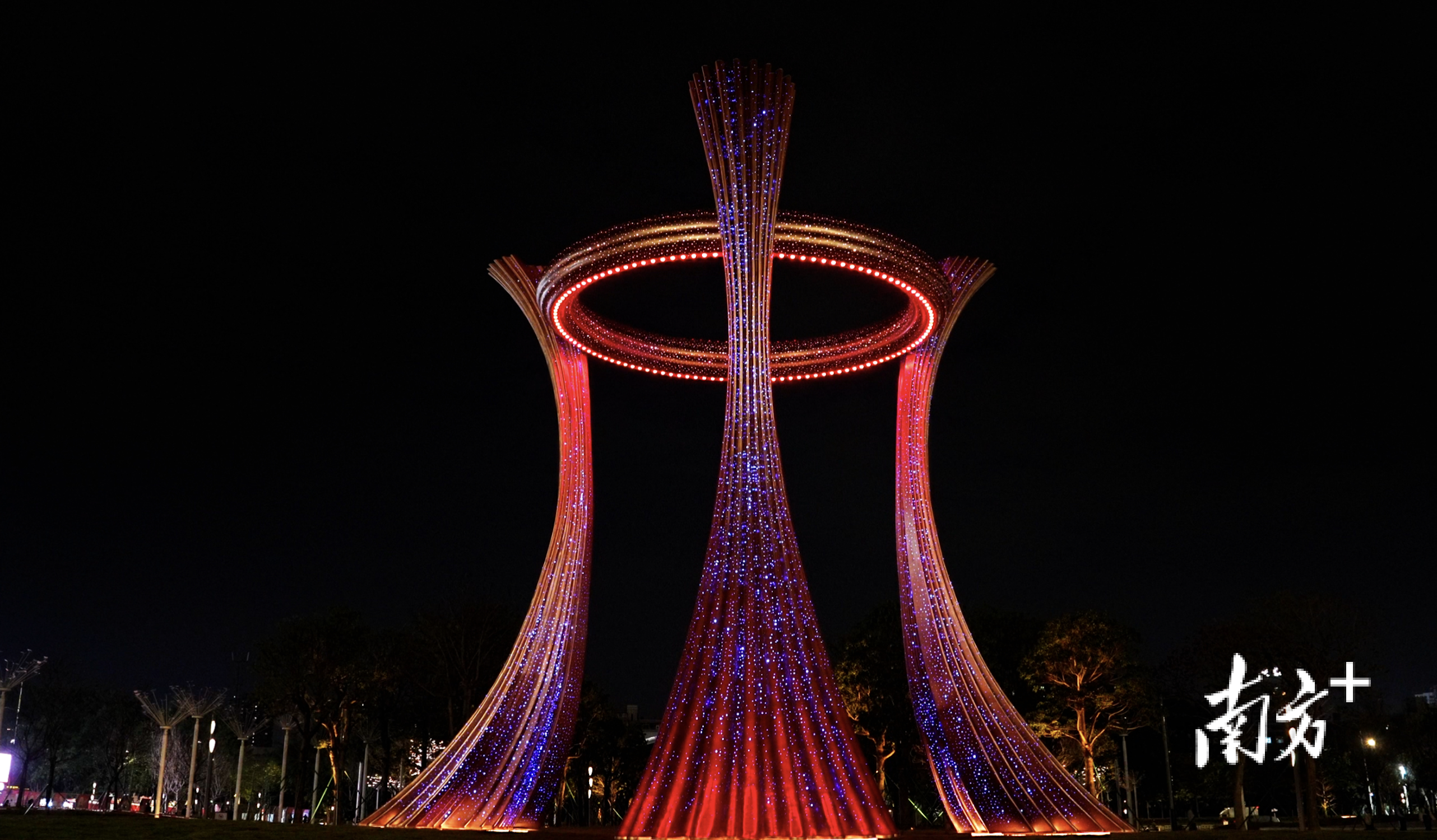 近日,十五运会火炬塔艺术性复建落成并璀璨亮灯,广州天河的夜空多了一簇永不熄灭的光。
