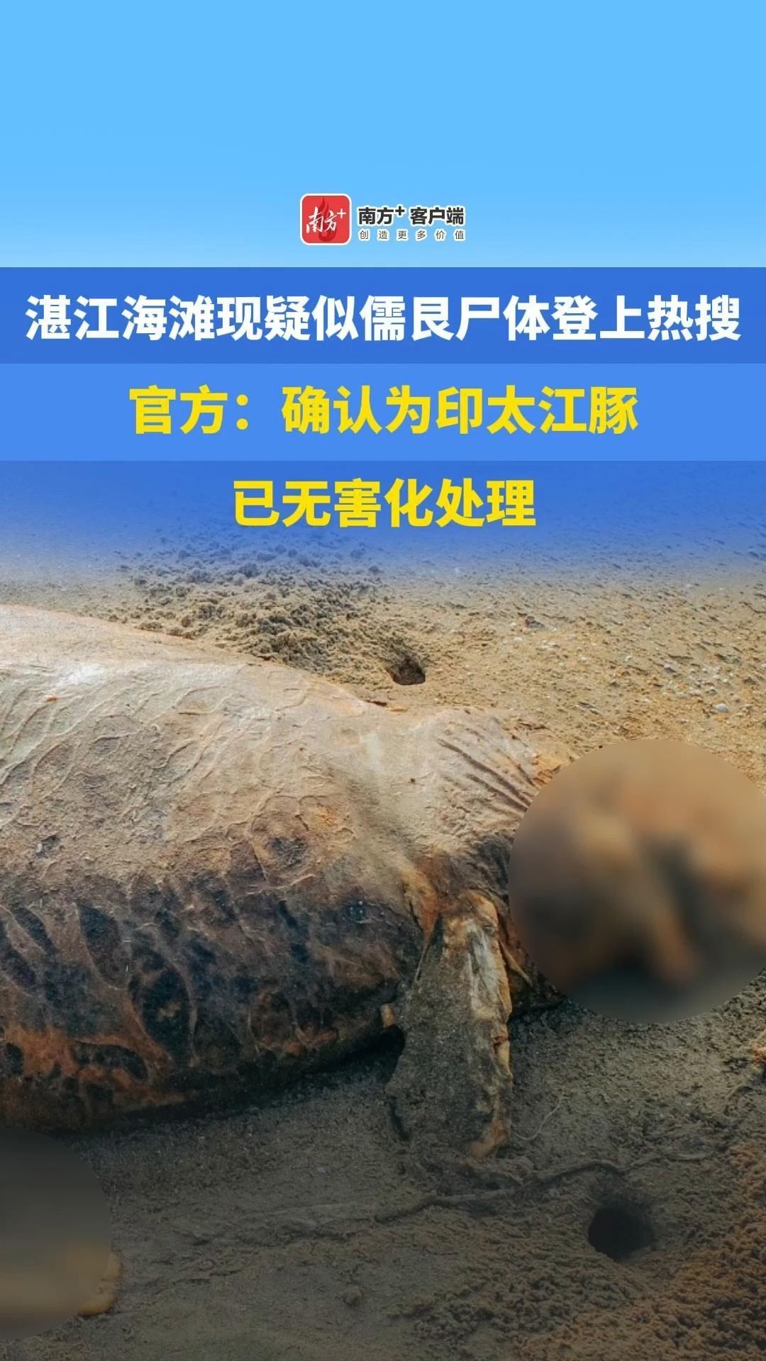 湛江海滩现疑似儒艮尸体登上热搜!官方:确认为印太江豚,已无害化处