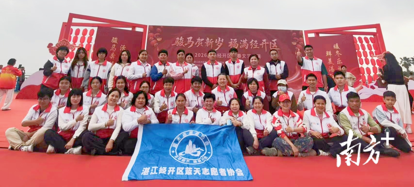 金鼓迎春至,骏马启新程。2月17日上午,湛江经济技术开发区2026年春节“暖冬乐游·鲜美湛江”新春文艺汇演在海豚湾活力街区精彩启幕。40余名身着红马甲的经开区志愿者坚守岗位、倾力保障,以无私奉献成为节日舞台上一道温暖而亮眼的风景。