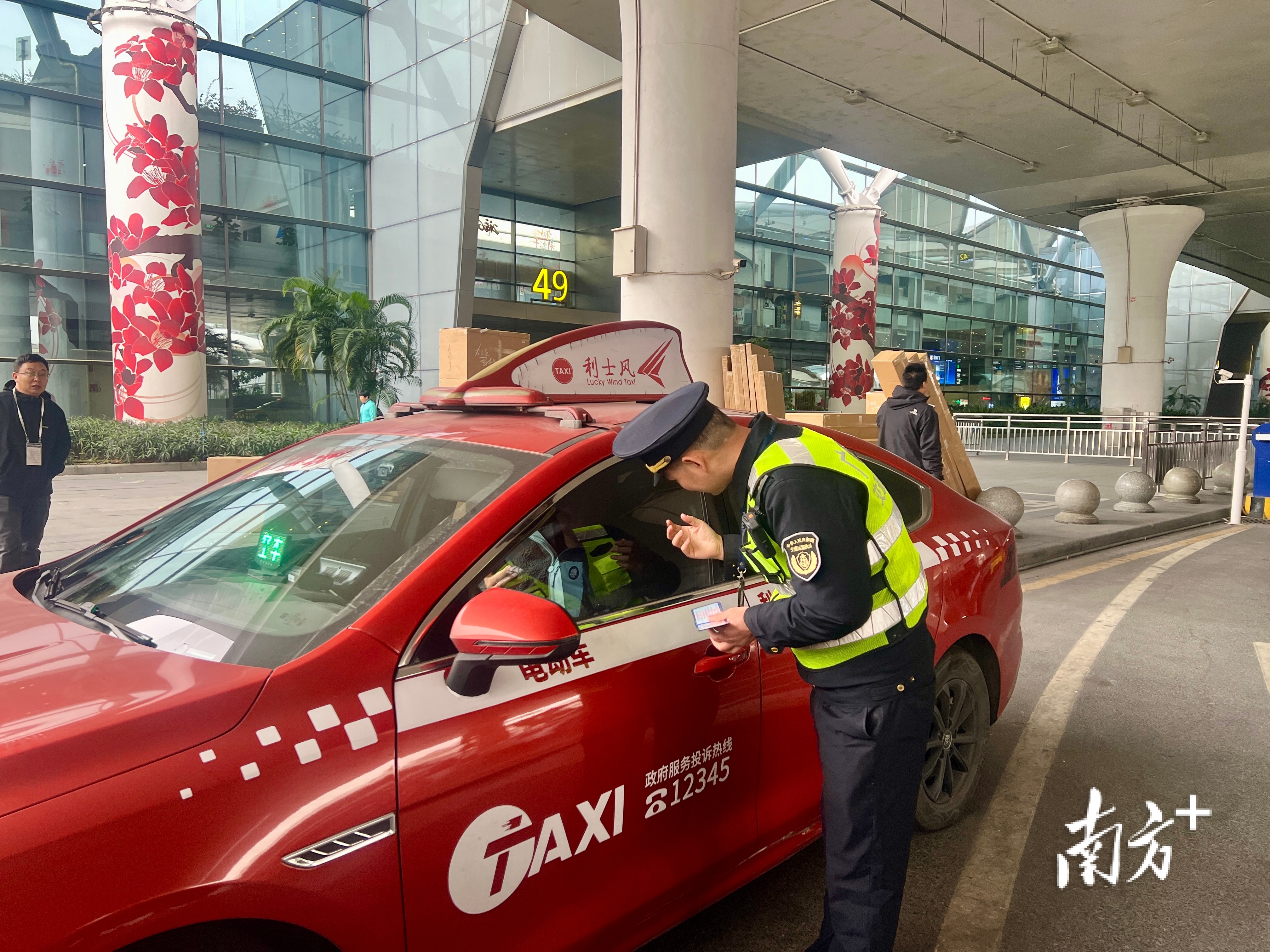 1月23日下午,广州交通执法人员就在白云机场T2航站楼的线下执法中,发现一名涉嫌营运未注册的违章。广州市交通运输局执法人员许敬龙告诉记者,该出租车司机注册在安晟公司,但其所驾驶的车辆为利士风,公司不符,“司机的保险在安晟购买,但他驾驶利士风的车辆,保险是无法为他的营运行为进行保障的,对乘客来讲存在一定风险。”
