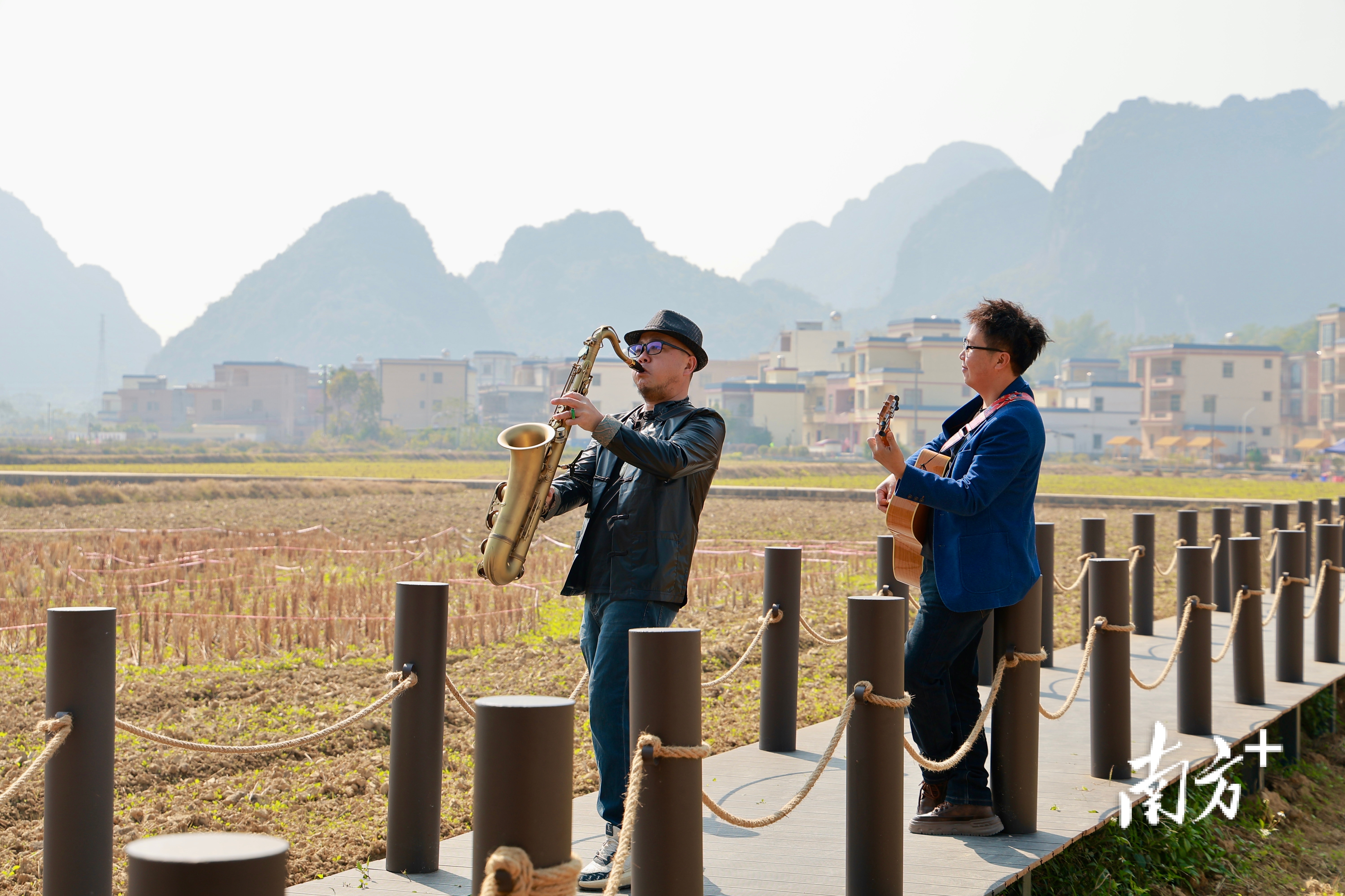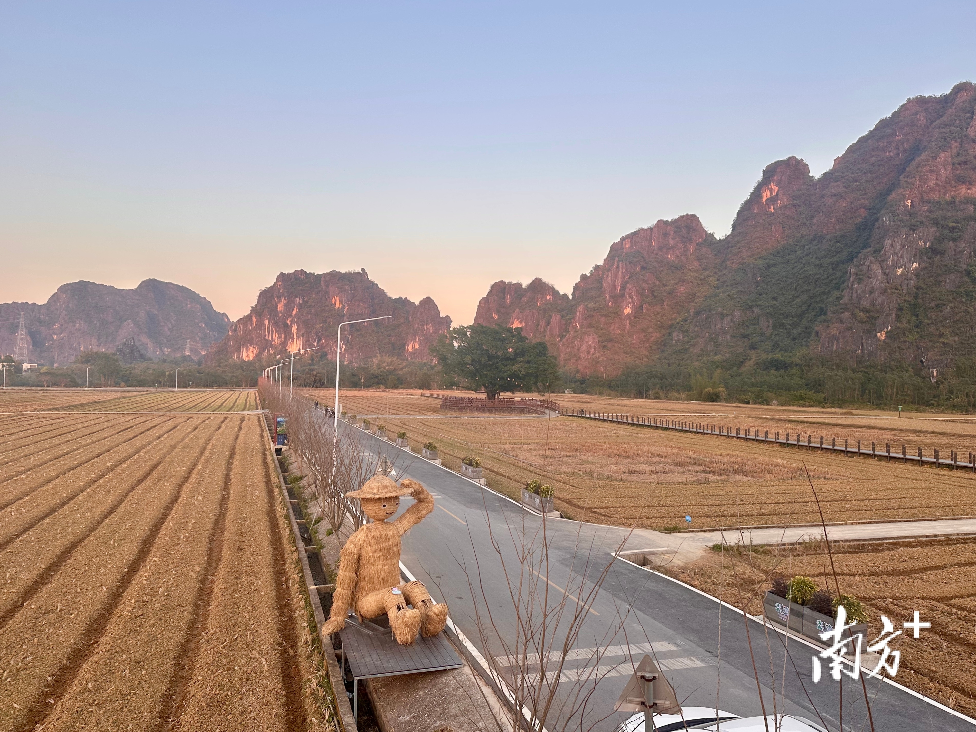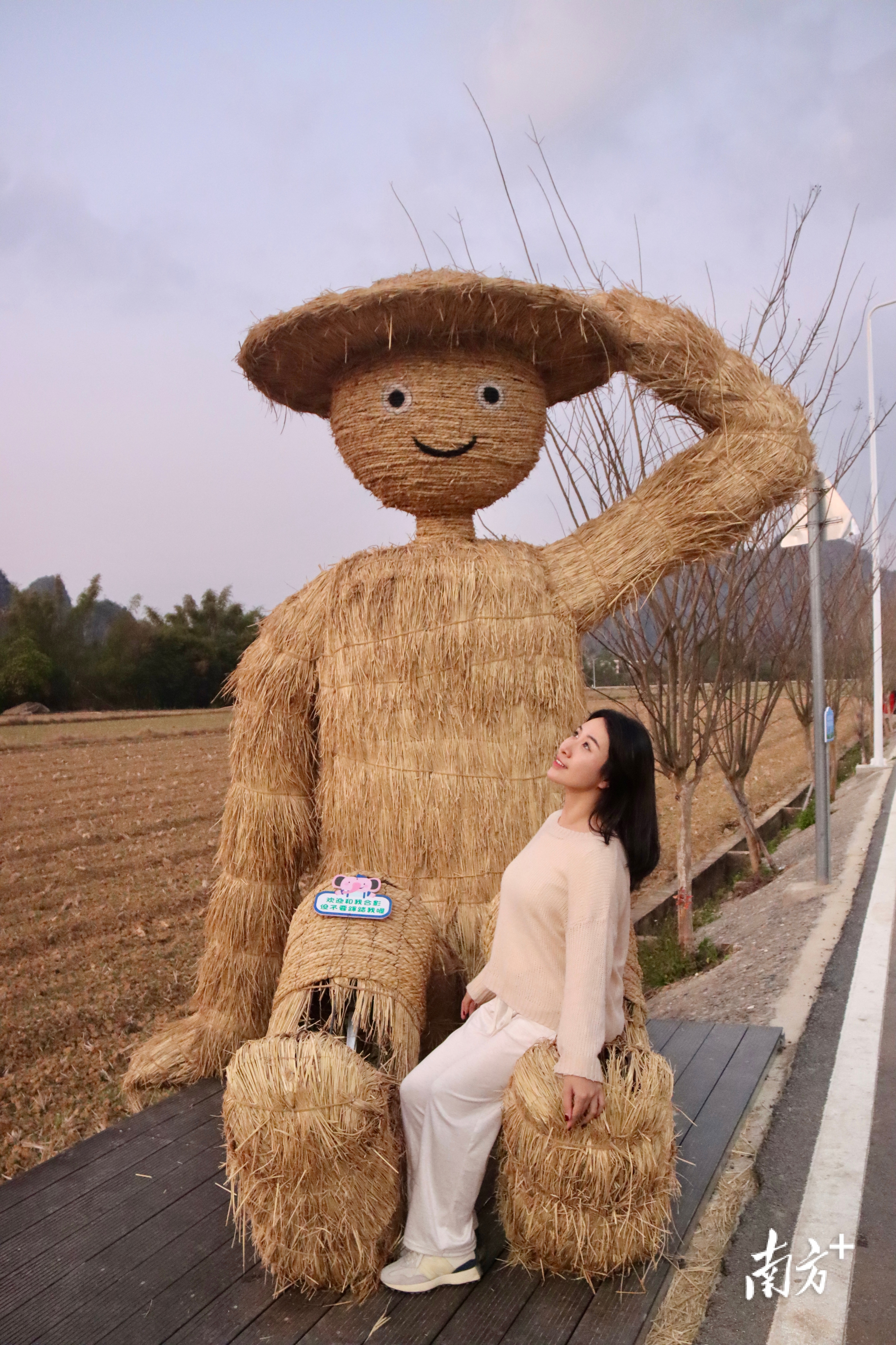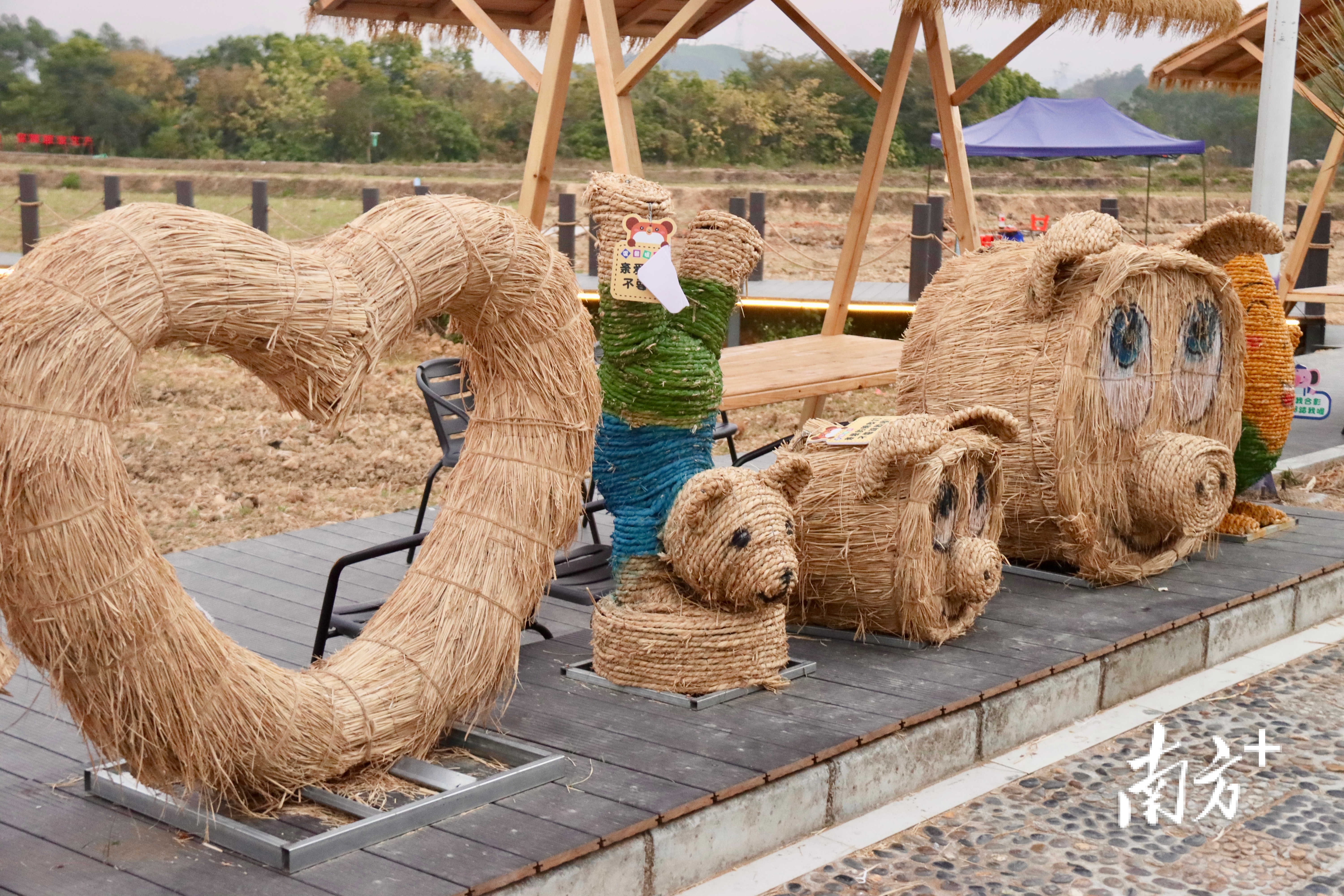 栈道上,来自阳江的陈先生一家正在稻草艺术装置前合影。“孩子从来没见过这么有趣的稻草人,玩得不亦乐乎。”他告诉笔者,这次是专门带孩子来体验乡村生活,没想到现在的农村这么有创意。