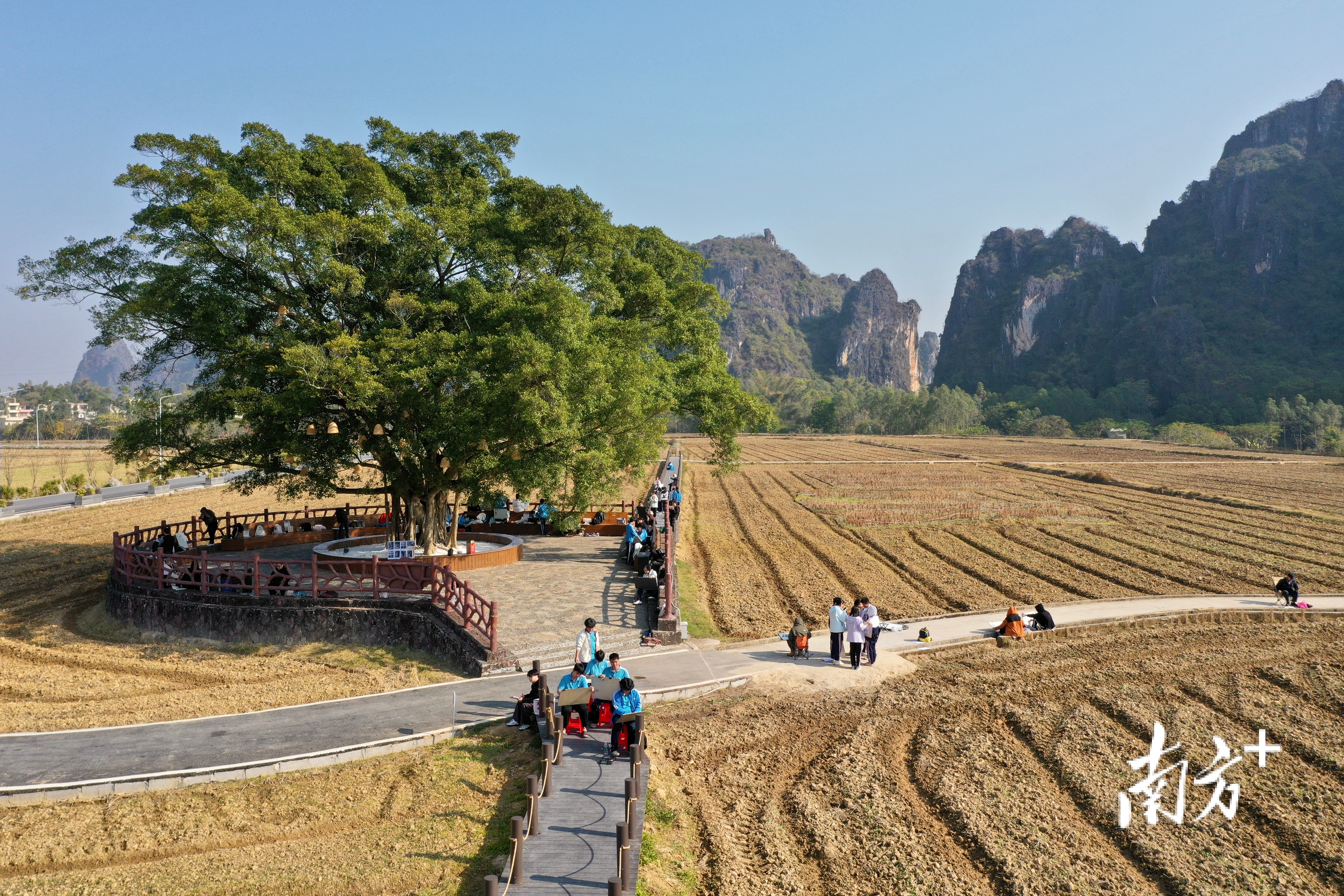 此外,阳江市“我为家乡写地名”书法作品成果巡展(阳春站)也于近日来到了那星村。书法艺术与那星村稻田的秀美风光相映成趣。“在这里不仅有美景,还有文艺作品给游客们欣赏,简直是一举两得。”陈先生兴奋地说,“这两天村里还有挥春活动,我们收到了广州美术学院师生现场写的春联,感觉迎新春的氛围更加浓厚了。”
