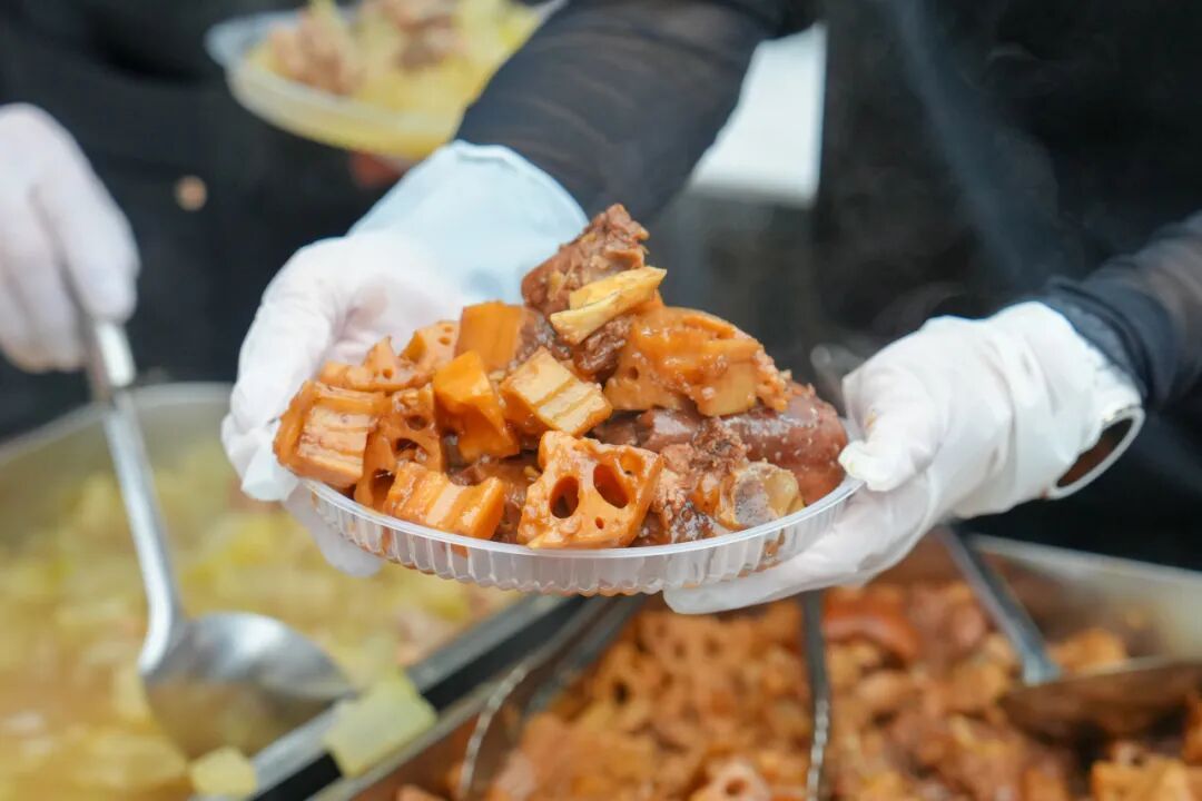 “平时跑单忙,随便对付一口是常态。今天能坐下来吃上这么暖和的‘流水席’,心里真的很热乎!”一位外卖小哥笑着说。