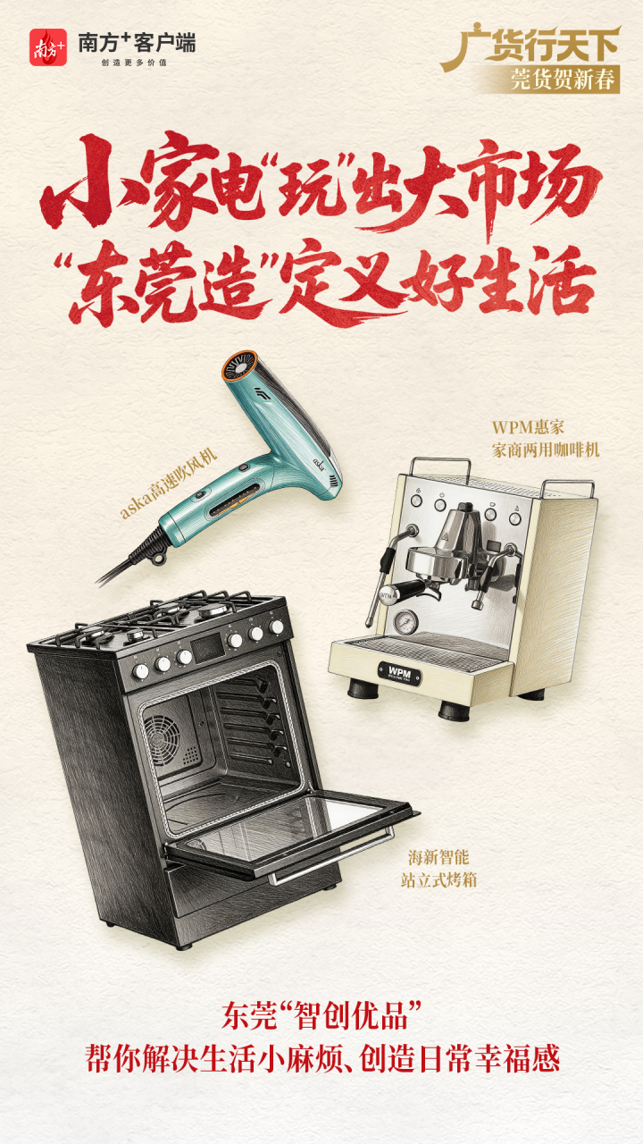 如今,兼具实用功能与美学设计的小家电,早已不再是单纯提升烹饪、清洁效率的工具,更成为点缀日常、增添新春仪式感、进阶生活品质的暖心伴侣。而东莞这座“世界工厂”,也不仅是全球闻名的产品“制造者”,更是人们追求美好生活的 “陪伴者” 与 “创造者”。