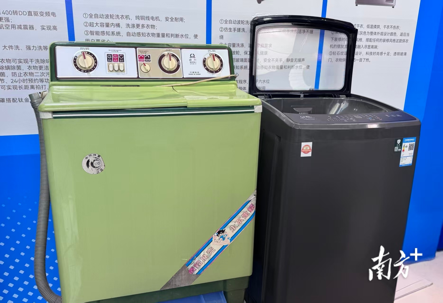 在“广货行天下”春季行动家电专场,威力现场展出了两台相隔四十来年的洗衣机。