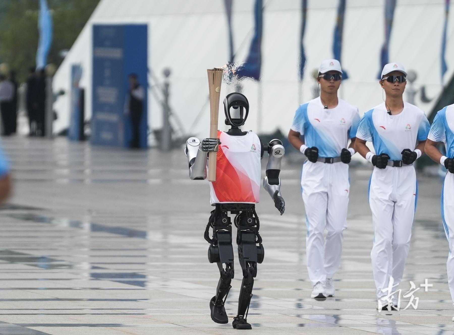人形机器人不仅列入火炬传递方阵,还化身迎宾礼仪迎接参赛运动员……