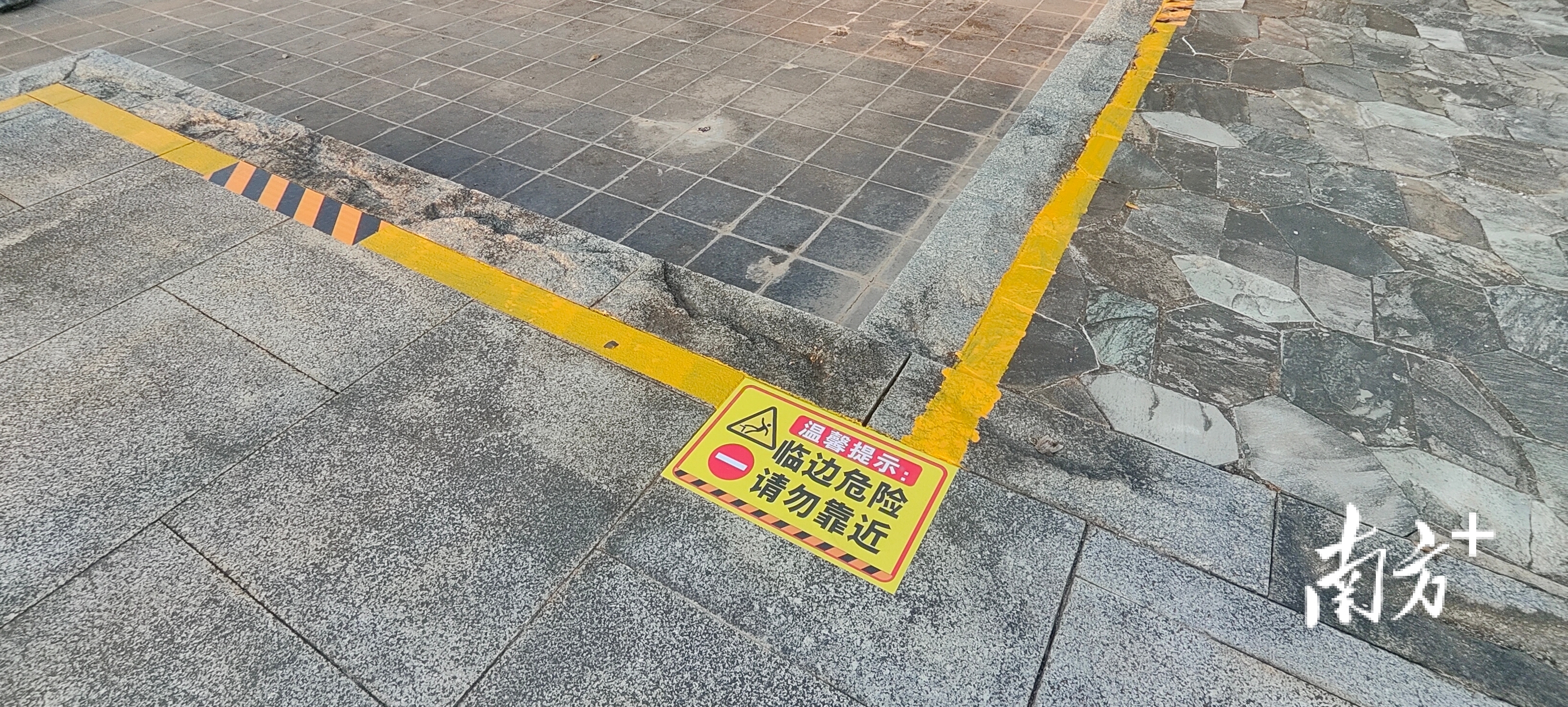 当日下午,记者再次前往市民公园水池片区,各水池边缘位置均已画上黄色的警戒线,部分转角和廊桥连接等节点位置零星贴上了反光条,以及设置“临边危险,请勿靠近”的温馨提示牌,提醒市民安全游玩,谨防跌落水池危险。