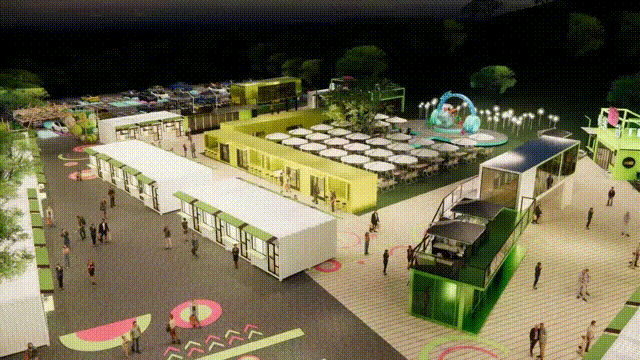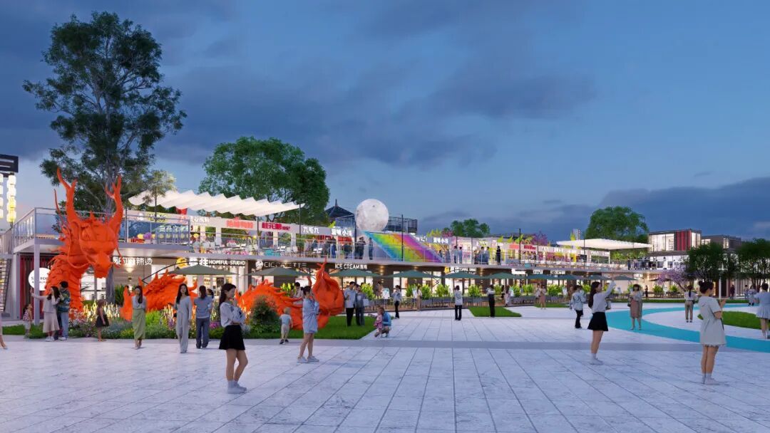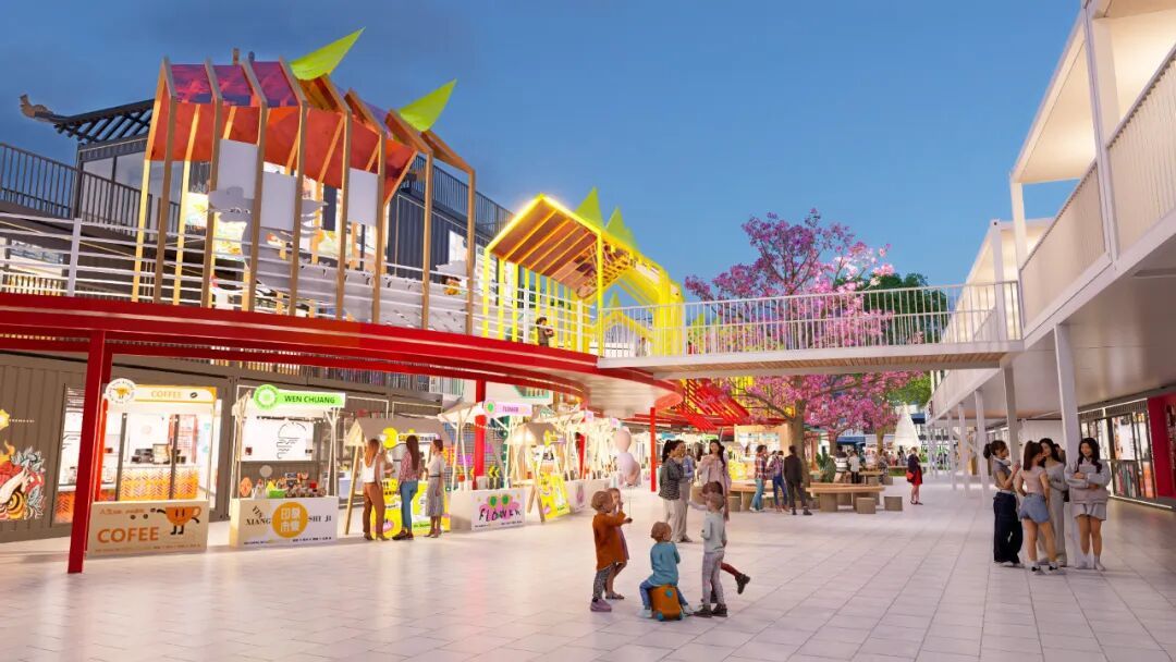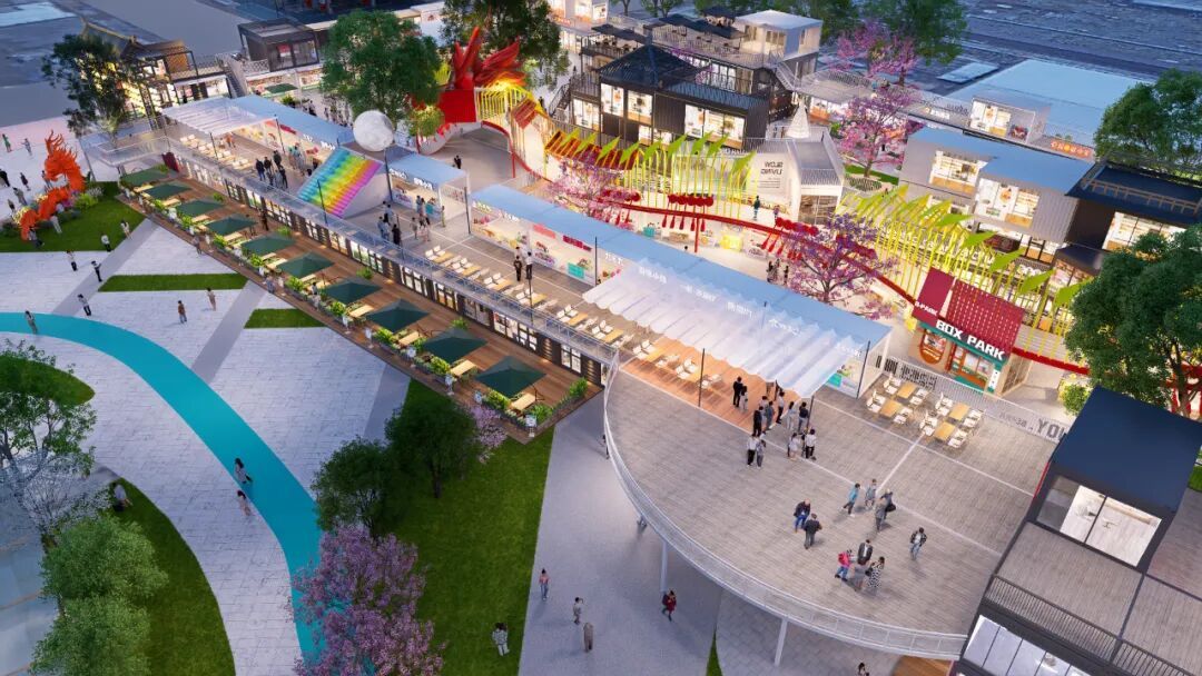 觉华龙堂公园集市定位为非遗文化基地、美食集合基地、休闲生活基地、娱乐潮玩基地,以时尚、活力的集装箱空间建设理念,融入工业风格与现代化设计元素,打造一个充满创意与活力的潮流商业街区和文化体验街区,而龙舟文化元素和文化体验场景也是公园集市一大特色亮点。