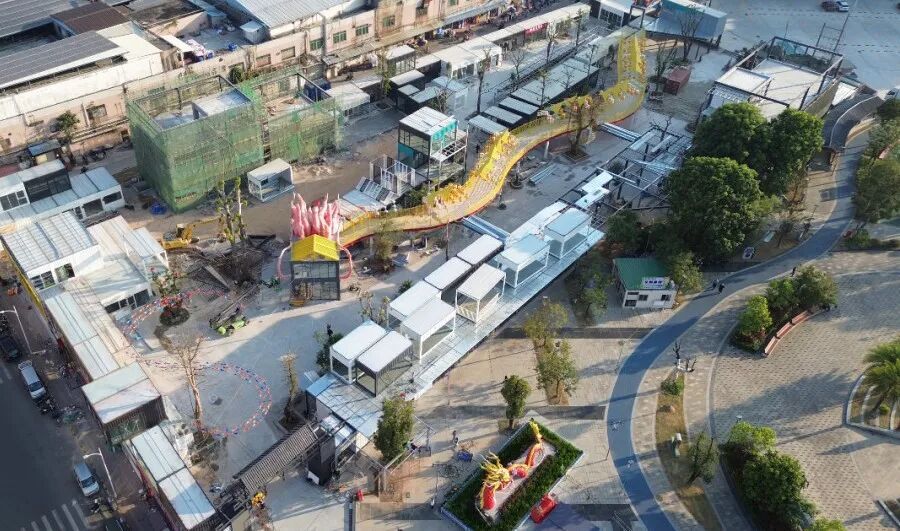 目前,觉华龙堂公园集市已紧锣密鼓进入最后装修阶段。现场看到,集装箱布局已颇具规模,里面的灯光造型、绿化美化和地面工程已基本完成。