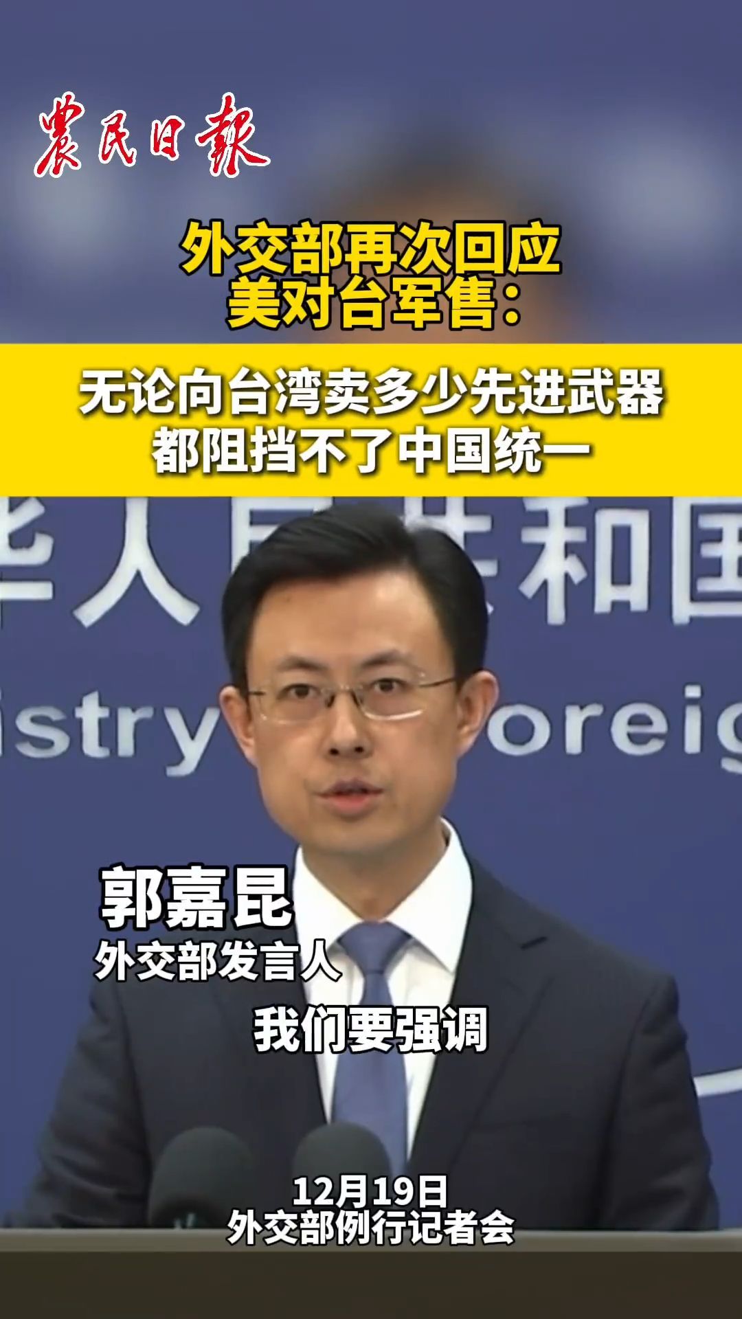 外交部再次回应美对台军售:无论向台湾卖多少先进武器,都阻挡不了中国统一
