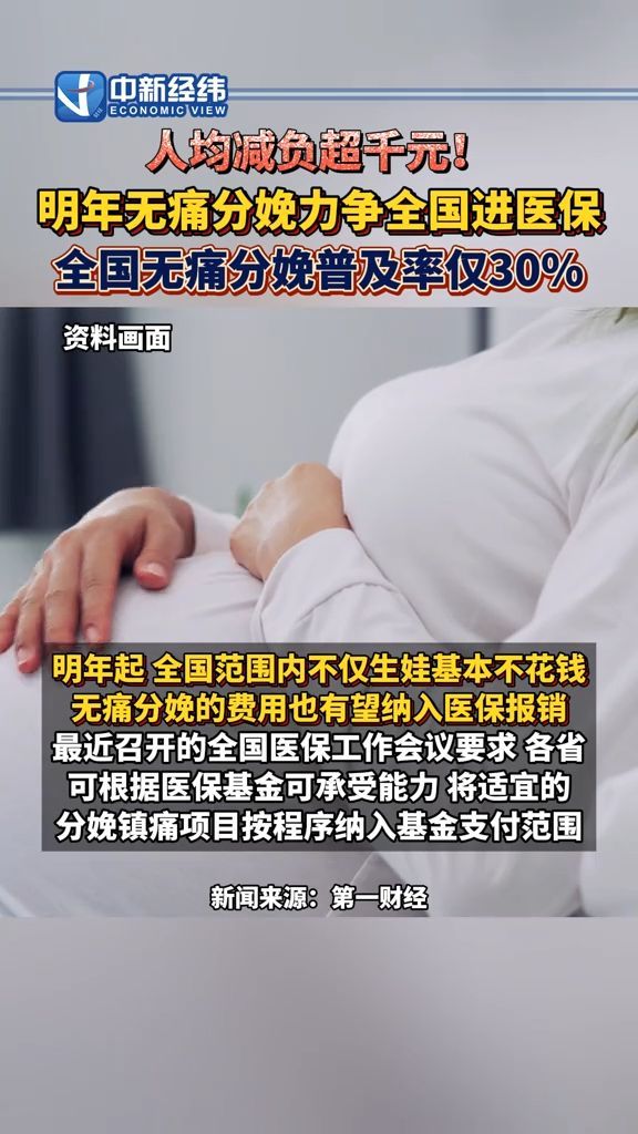 从明年起,在全国范围内不仅生娃基本不花钱,准妈妈们无痛分娩的费用也有望纳入医保报销。最近召开的全国医保工作会议要求,各省可根据医保基金可承受能力,将适宜的分娩镇痛项目按程序纳入基金支付范围。目前江苏,浙江,广西、吉林,上海等省份已落地实施无痛分娩进医保,人均减负超千元。详情>>
