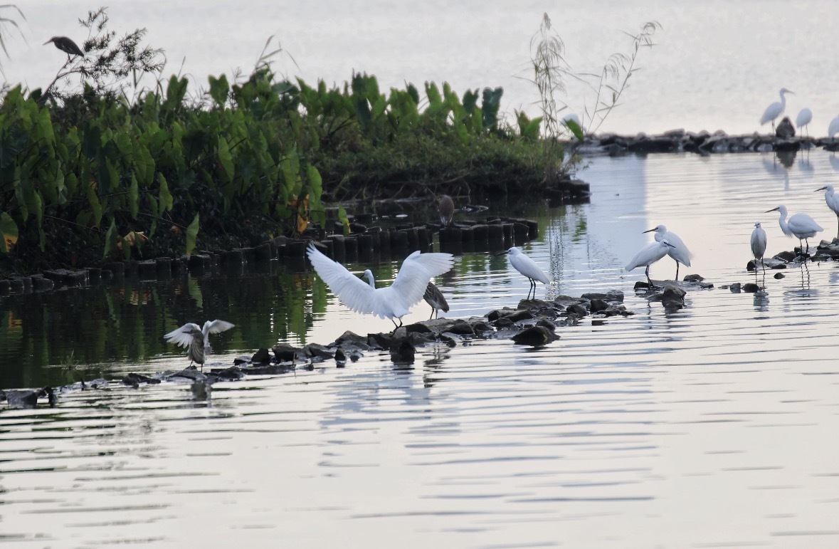 常见鸟类:黑翅鸢、白鹭、夜鹭、苍鹭、大白鹭、小䴙䴘。