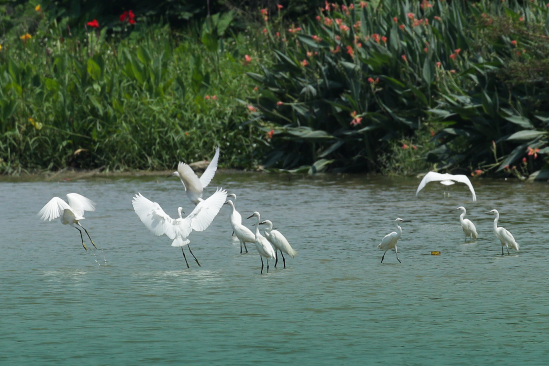 常见鸟类:白鹭、夜鹭、红耳鹎、白胸苦恶鸟、普通翠鸟、乌鸫。