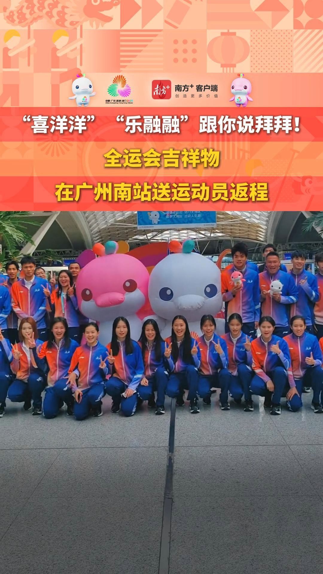 “喜洋洋”“乐融融”跟你说拜拜!上个周末,随着十五运会闭幕,广州南站迎来运动员、技术官员等大批参赛人员离穗,全运会吉祥物亮相候车大厅,护送大家返程。