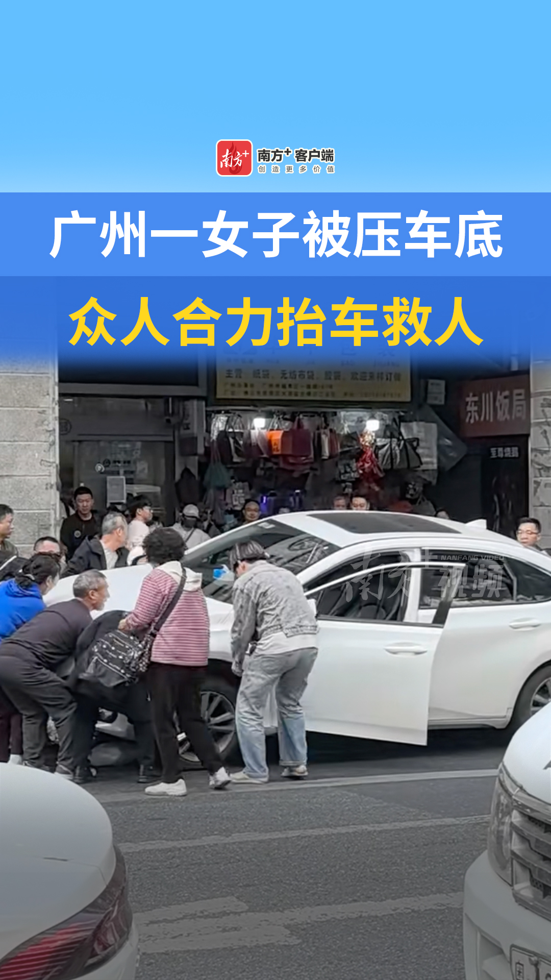 11月24日上午,广州市越秀区一德路发生暖心一幕:一名女士被压车底,近十名附近商户和路过的市民、外卖员合力将车抬起将其救出。目前伤者已被送往医院治疗。