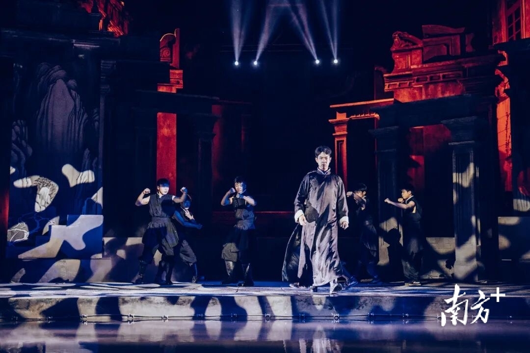同时,所有剧目均深度挖掘华侨文化、红色文化、岭南非遗等本土IP,如《一代宗师》融入非遗咏春拳元素,《醒狮少年》展现非遗南派醒狮的灵动气势;夜间实景演艺剧目《火秀》,以华侨文化为主题背景,融入非遗 “打铁花” 技艺。