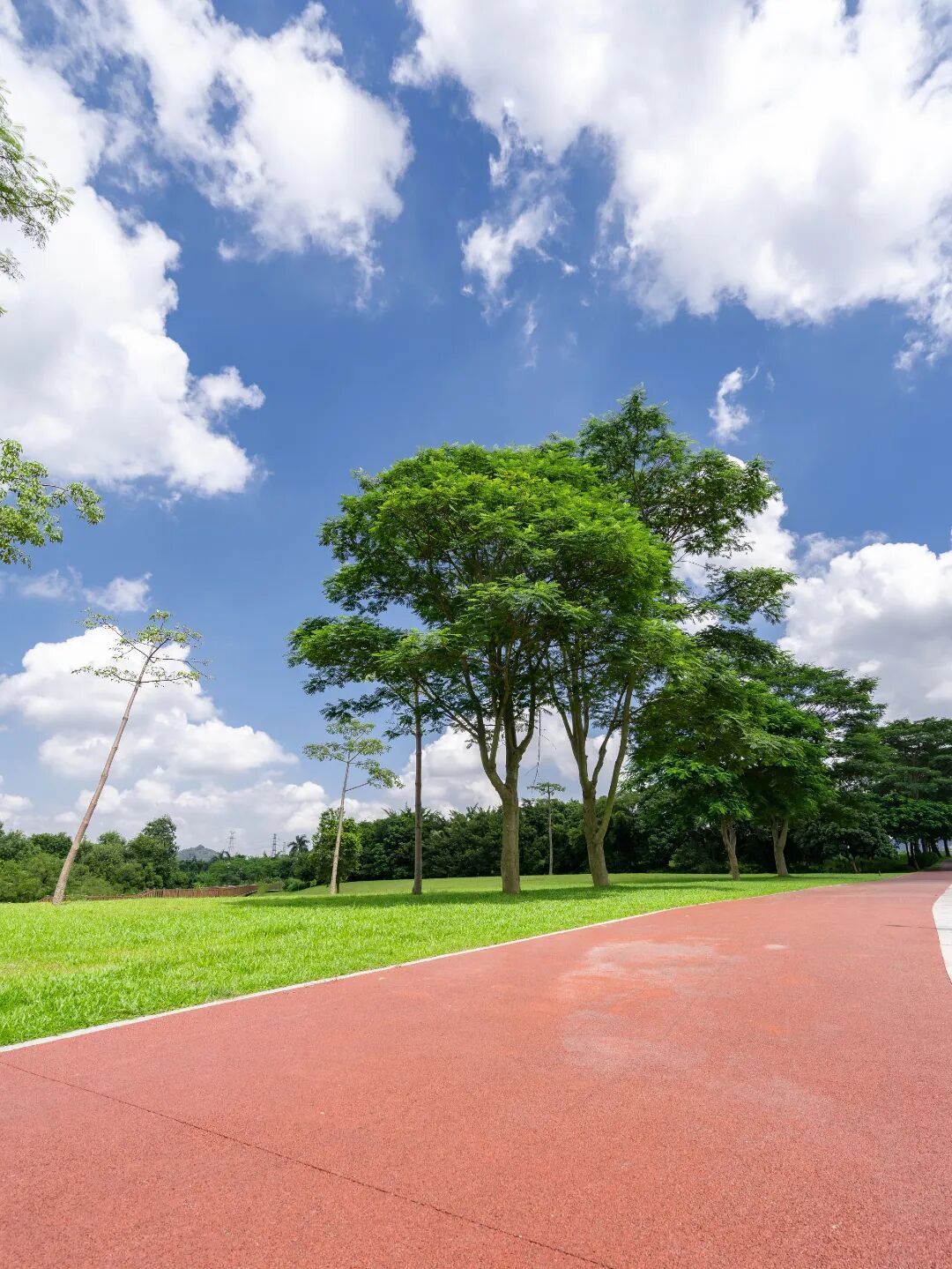👉景观方面,在保护原有荔林、落羽杉等植被基础上,同时补植宫粉紫荆、粉黛乱子草等观赏花木,营造“路在景中、景随路移”的生态画卷,实现骑行、观光与休闲的融合。