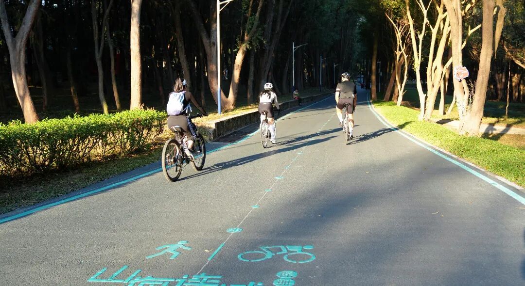✅更贴心的是通过“三道分离”的设计,将骑行、跑步与漫步空间清晰划分,实现人车分流,更加安全便捷。
