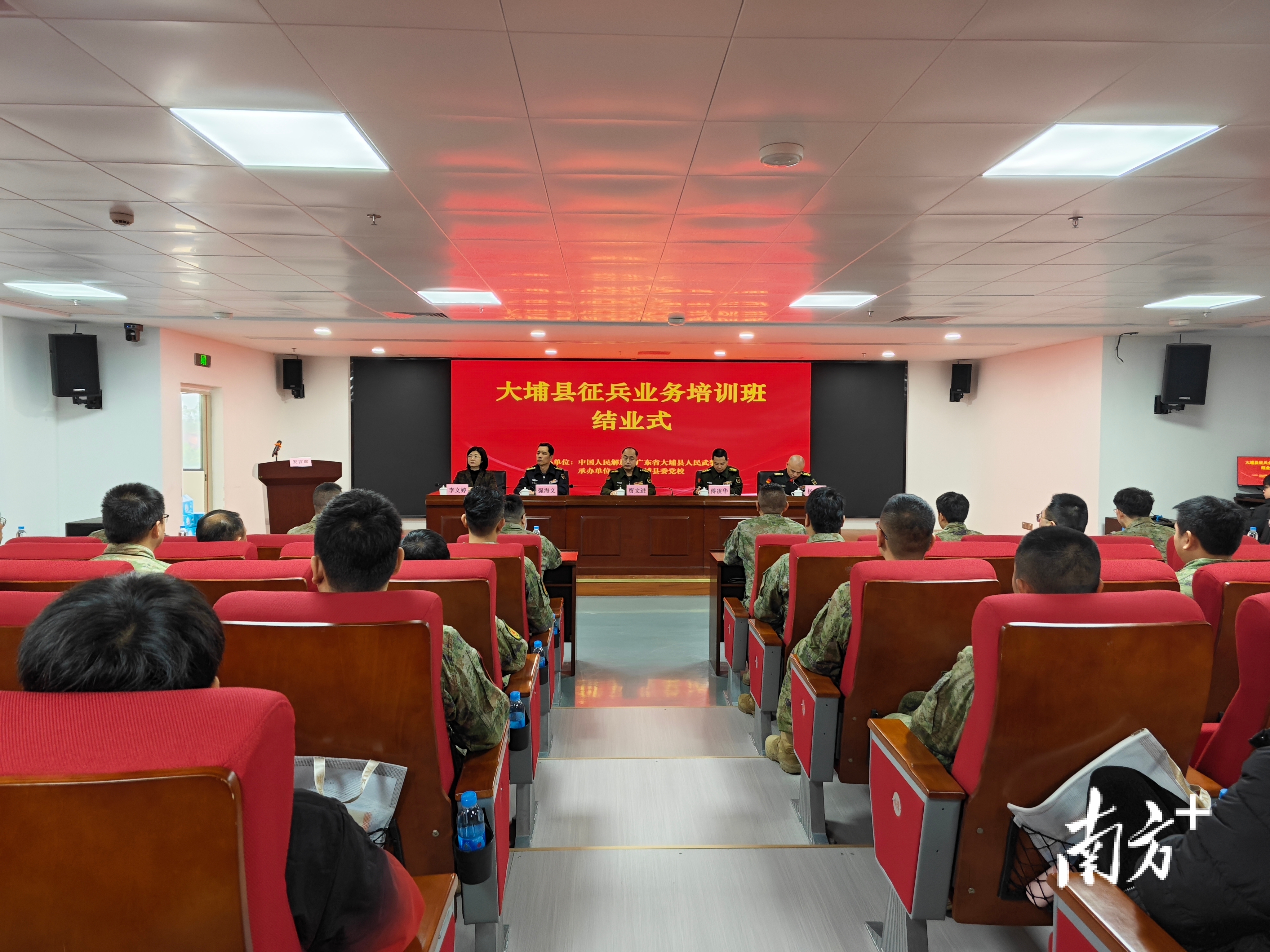 近日,大埔县人武部征兵业务培训班圆满收官,结业仪式在县委党校报告厅隆重举行。梅州市委常委、军分区领导贾文进出席仪式并讲话,梅州军分区动员处处长傅凌华,县委常委、县人武部主要领导强海文,县委党校副校长李文婷出席仪式,仪式由县人武部主要领导杨建主持。大埔县人武部机关全体人员、各镇场专武干部及相关单位业务骨干参加结业仪式。