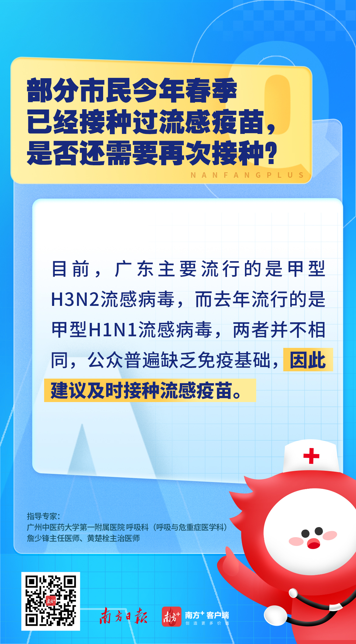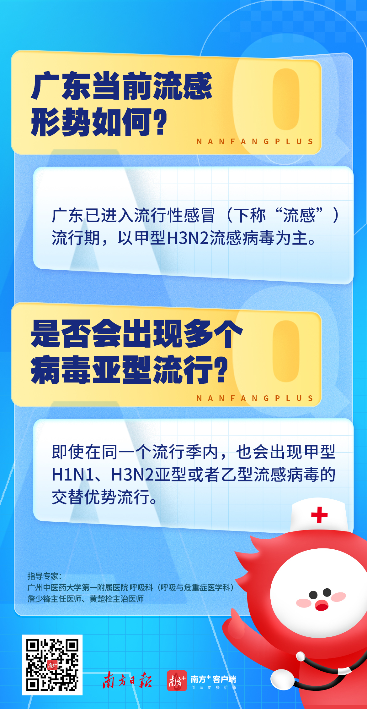 目前,广东流感处于流行期,主要流行甲型H3N2流感病毒,人员密集的集体单位存在发生暴发疫情风险。当前流感的形势如何,感染病毒后能否接种疫苗?记者对话相关专家。
