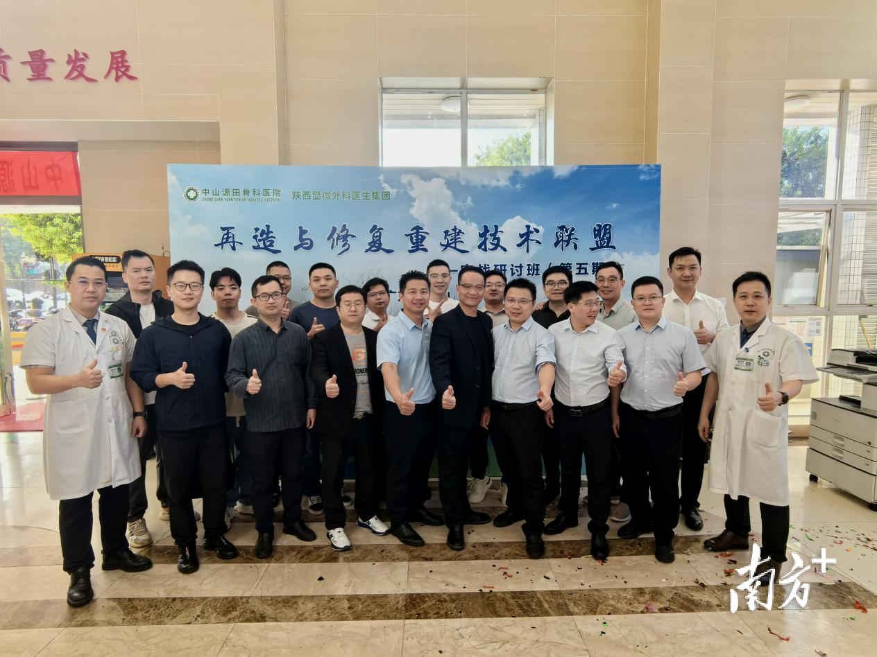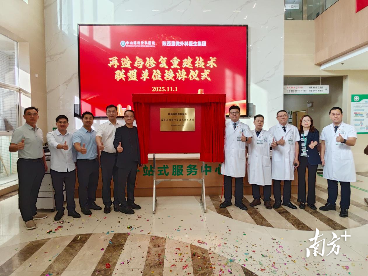 2025年11月1日上午,再造与修复重建技术联盟单位授牌仪式在中山源田骨科医院一楼门诊大厅举行。特邀陕西显微外科医生集团、宝鸡市第五人民医院教授陈龙峰致辞,中山源田骨科医院总经理熊金平、业务院长陈民毅等院方领导与陈龙峰教授共同揭牌。同日,“第五期再造与修复重建技术联盟实战研讨班”在医院行政楼会议室顺利举办。