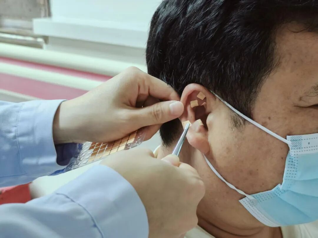 耳穴压豆法。图源:作者拍摄
