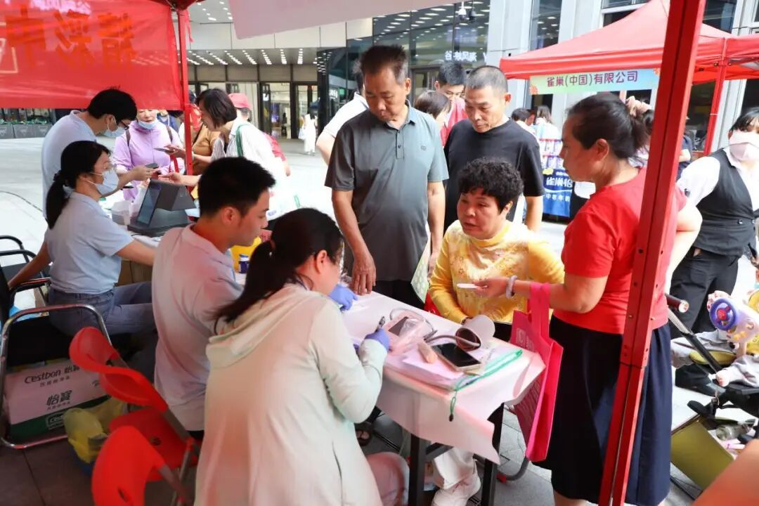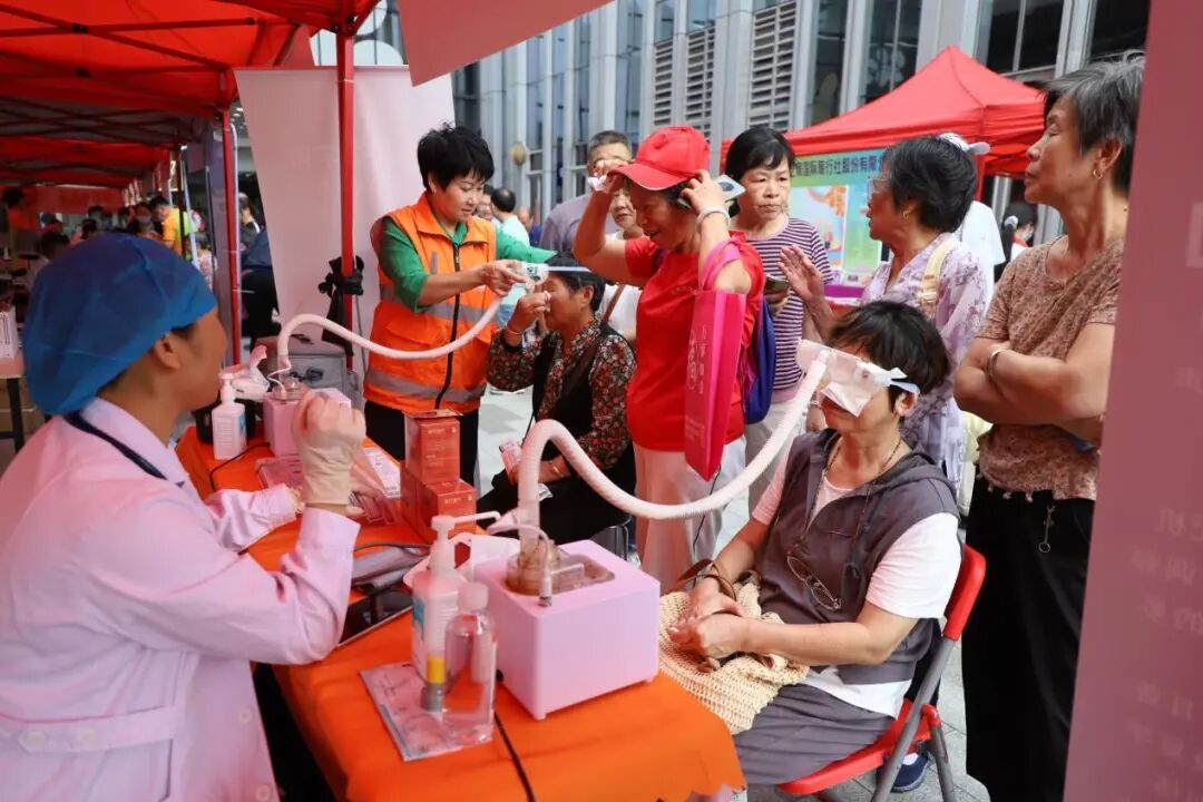 在各个展位间,老友们相约而至,或一起研究智能穿戴设备,或坐下话话家常,或在“打卡集章赢好礼”的互动游戏中通力合作,现场洋溢着欢声笑语。在备受长者欢迎的中医义诊区,来自区养老院的宁飞医生被热情的长者朋友们层层围住,他耐心细致地为每一位老人解答健康疑问,提供专业的诊疗建议,成为了现场最忙碌的“明星”之一。