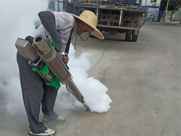 伴随着嗡嗡的喷洒声,专业消杀人员身背超低容量喷雾机,对绿化带、下水道、地下车库等易孳生蚊虫的区域进行全覆盖喷洒。针对无法清除的积水点位,工作人员精准投放了灭蚊蚴剂,从源头切断蚊虫繁殖链条。