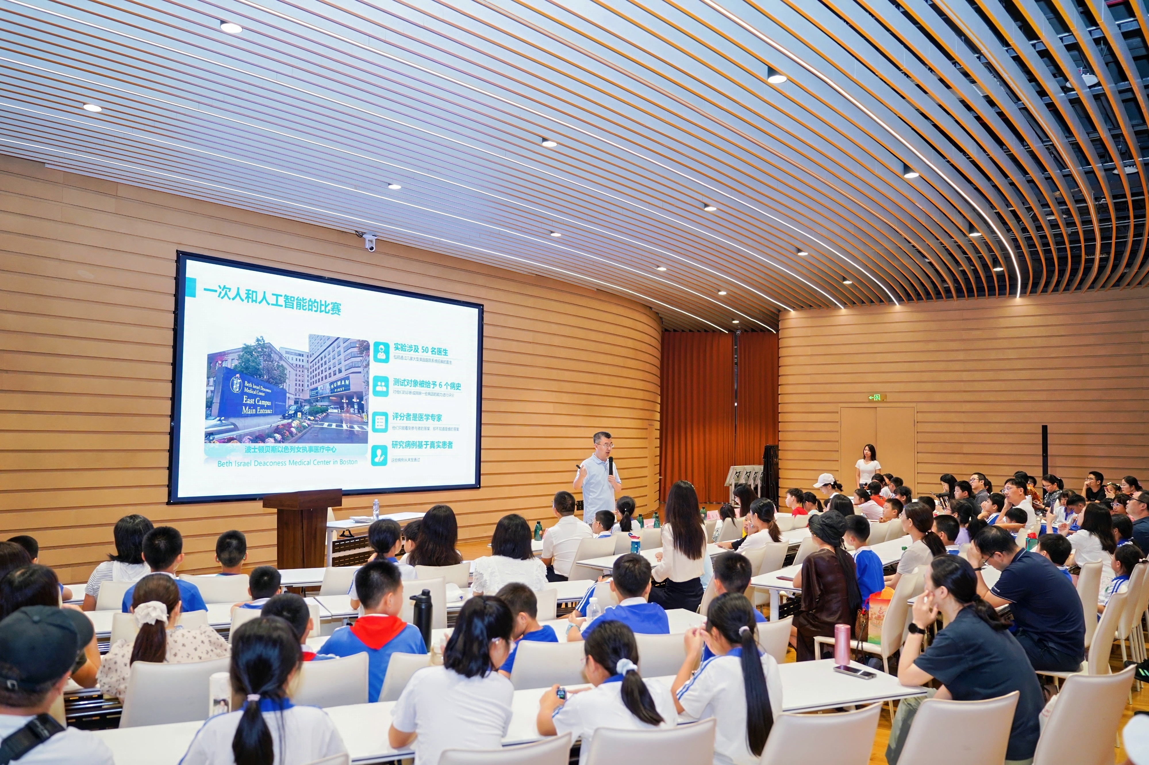 互动环节成了思想碰撞的乐园,孩子们的问题如泉水般涌出,天马行空又直指本质: “AI能帮我写作业吗?” “机器人要是学会踢足球,它能打败梅西吗?”