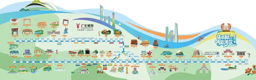 更重要的是,8个城际站点实现与地铁无缝换乘,大石东站可换乘地铁三号线,琶洲站衔接十一号线与七号线,白云机场南站则直接连通地铁三号线,这种“城际+地铁”的立体网络,彻底打破了番禺与广州主城及大湾区城市的时空壁垒。“搭城际游湾区”打卡地图的推出,更让交通便利性转化为旅游体验感的提升,游客可轻松规划跨城文旅线路。