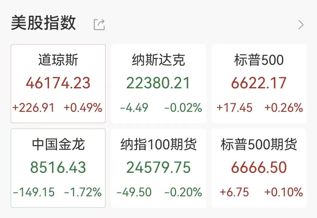 当地时间周五(9月26日),美股三大指数集体高开,但随后走势出现分化,截至发稿,道指涨0.49%,标普500指数涨0.26%,纳指跌0.02%。
