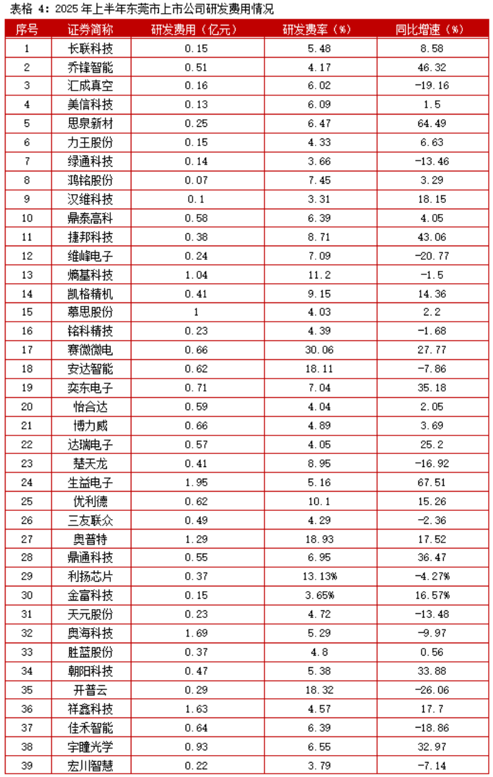 据悉,东莞上市公司在2025年上半年的研发创新动能持续展现出显著的头部集中特征,整体研发投入结构延续了2024年的格局。