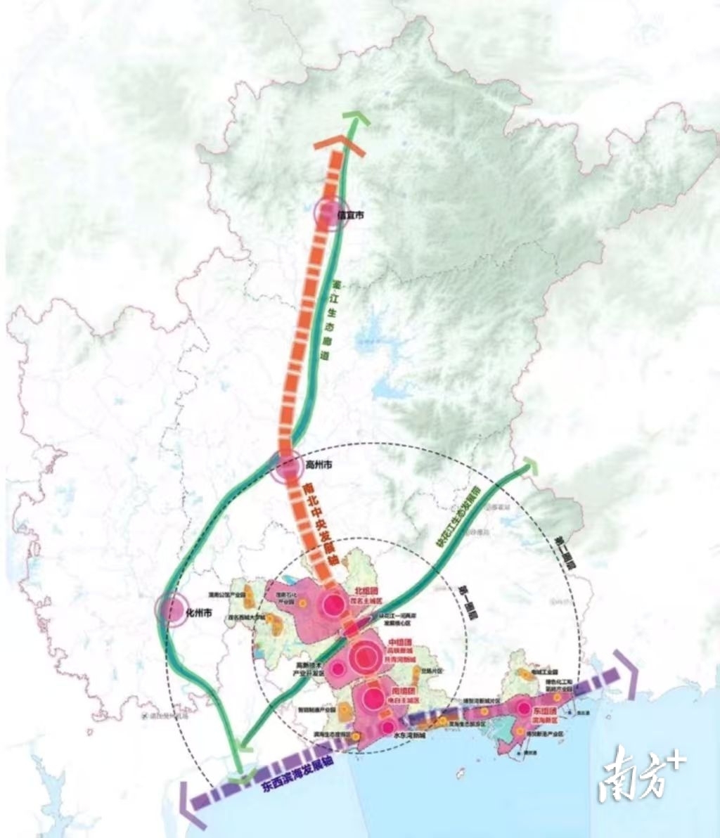 高铁开通不仅重塑了粤西的交通格局,更激活了城市发展的新空间。茂名新城地处粤港澳大湾区、北部湾城市群和海南自由贸易港三大国家战略交汇处,雄踞茂名市“两轴-两个圈层”城市布局的中心位置,新型城镇化、新型工业化、“百县千镇万村高质量发展工程”政策叠加赋能,机遇前所未有。