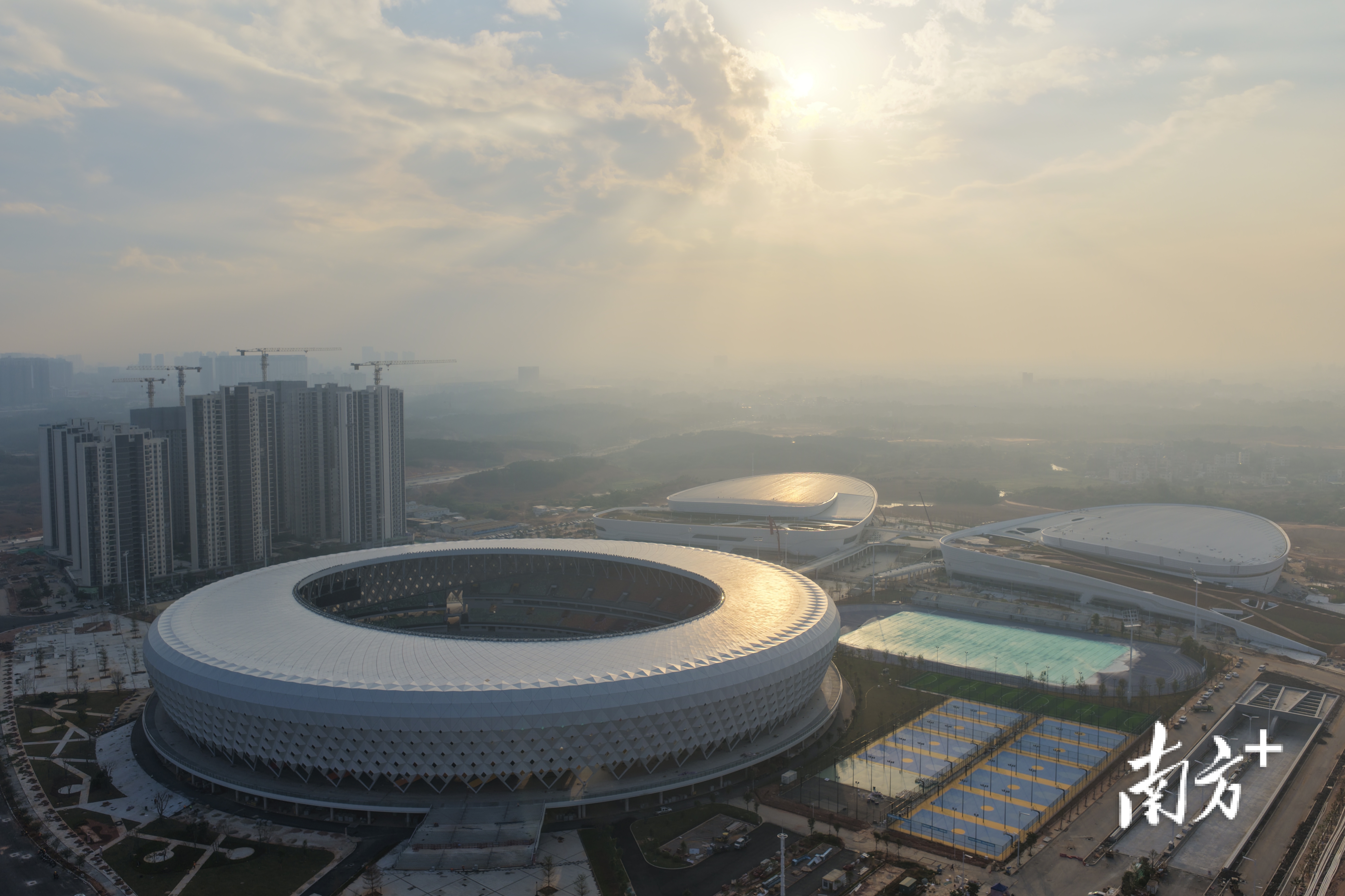 第二大机遇,是体育盛会的“加持”。2026年广东省运动会将在茂名举办,作为开幕式、闭幕式和17项比赛项目的举办地,茂名新城正以“办好一次会、兴旺一座城”的理念,高标准推进奥体中心“一场两馆”等标志性设施建设,“一颗荔枝,两扇贝壳”的创意造型惊艳亮相,将荔枝文化、海洋元素与现代建筑美学完美融合,成为城市新地标。一批场馆运营标杆企业纷至沓来、对接洽谈,高度评价茂名新城自然气候、地理区位、立体交通等优势,对建设户外冬训基地,带动“衣食住行游购娱”全链发展,打造永不落幕的赛事演艺经济充满信心。