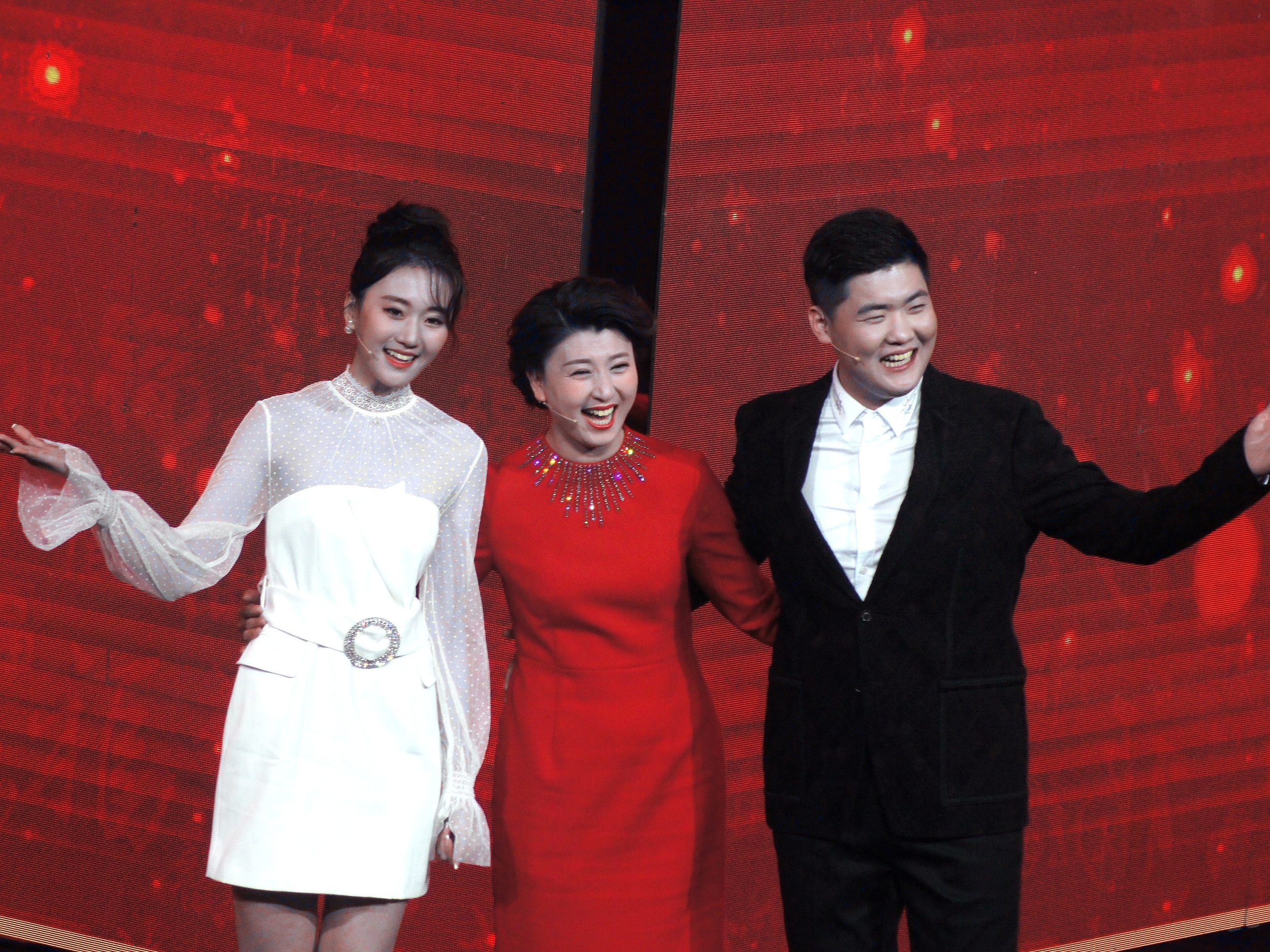 闫学晶与儿子儿媳同台合影 图据视觉中国