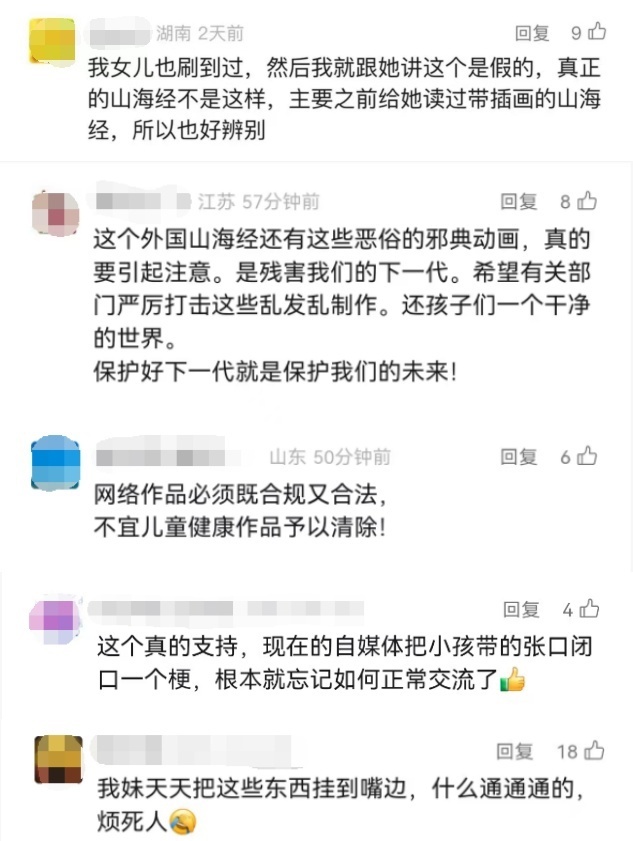 这类视频传入我国以后,因为形象太过古怪,被网友称为所谓“外国山海经”。专家介绍,“外国山海经”与中国古代典籍《山海经》毫无关联,这些形象并非出自传统动画或经典IP。