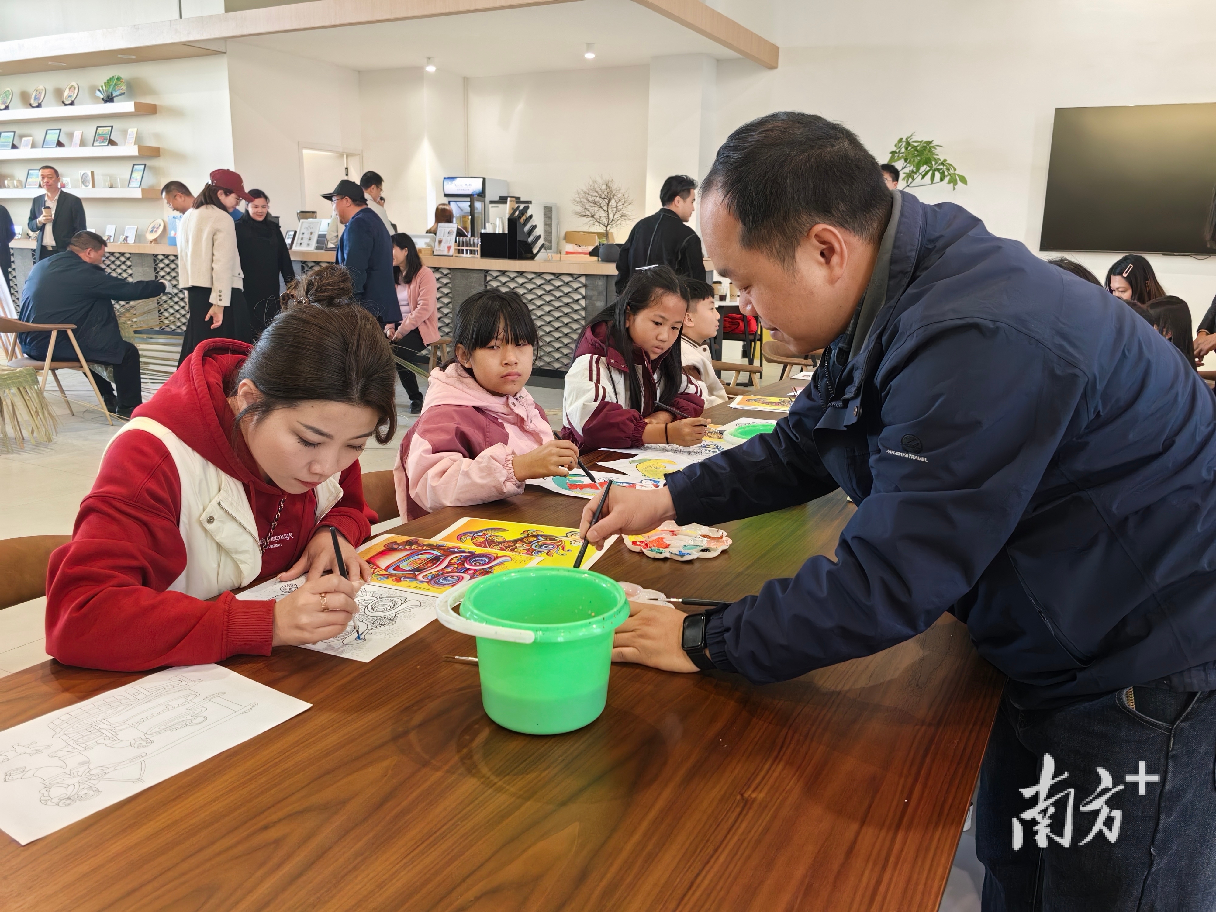 作为“中国农民画之乡”,龙门的文化基因也深度融入服务区肌理。入口处的鳌鱼灯、国家级非遗农民画展、米饼制作、织带仔等互动体验,吸引众多旅客驻足。印有乡土图腾的文创咖啡,也让非遗文化“活”了起来。