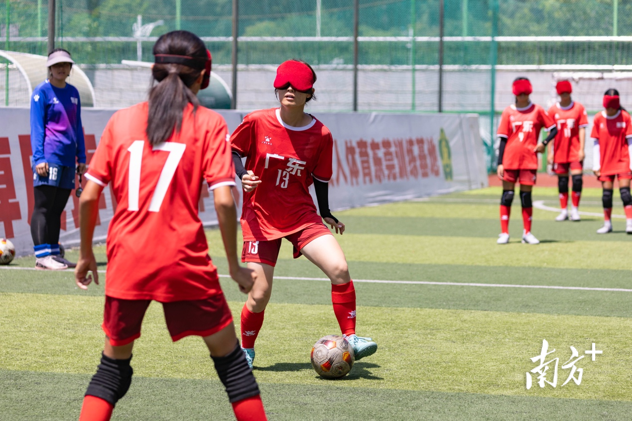 在看不见的绿茵场上,盲人足球运动员听声辨位,精进球技;