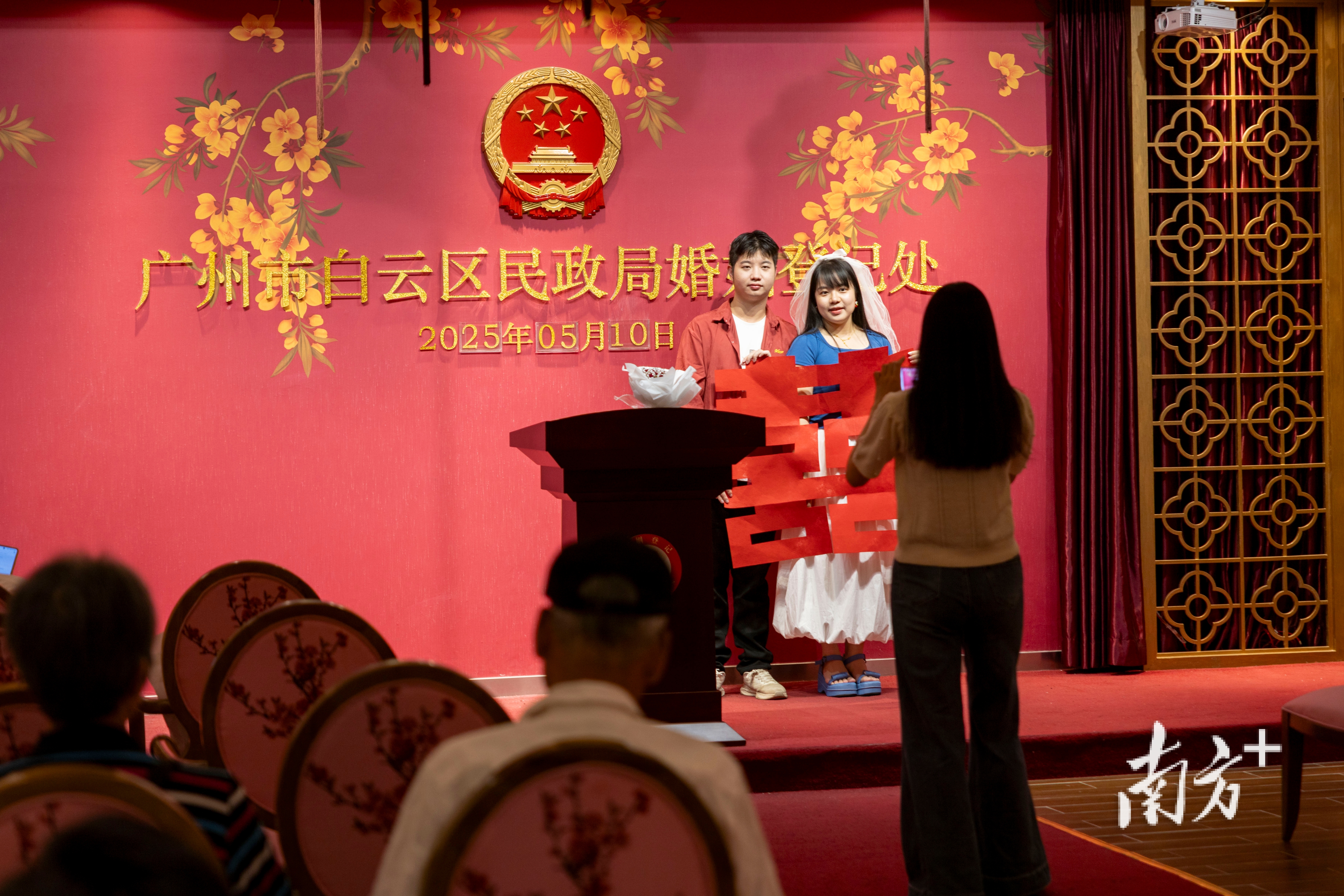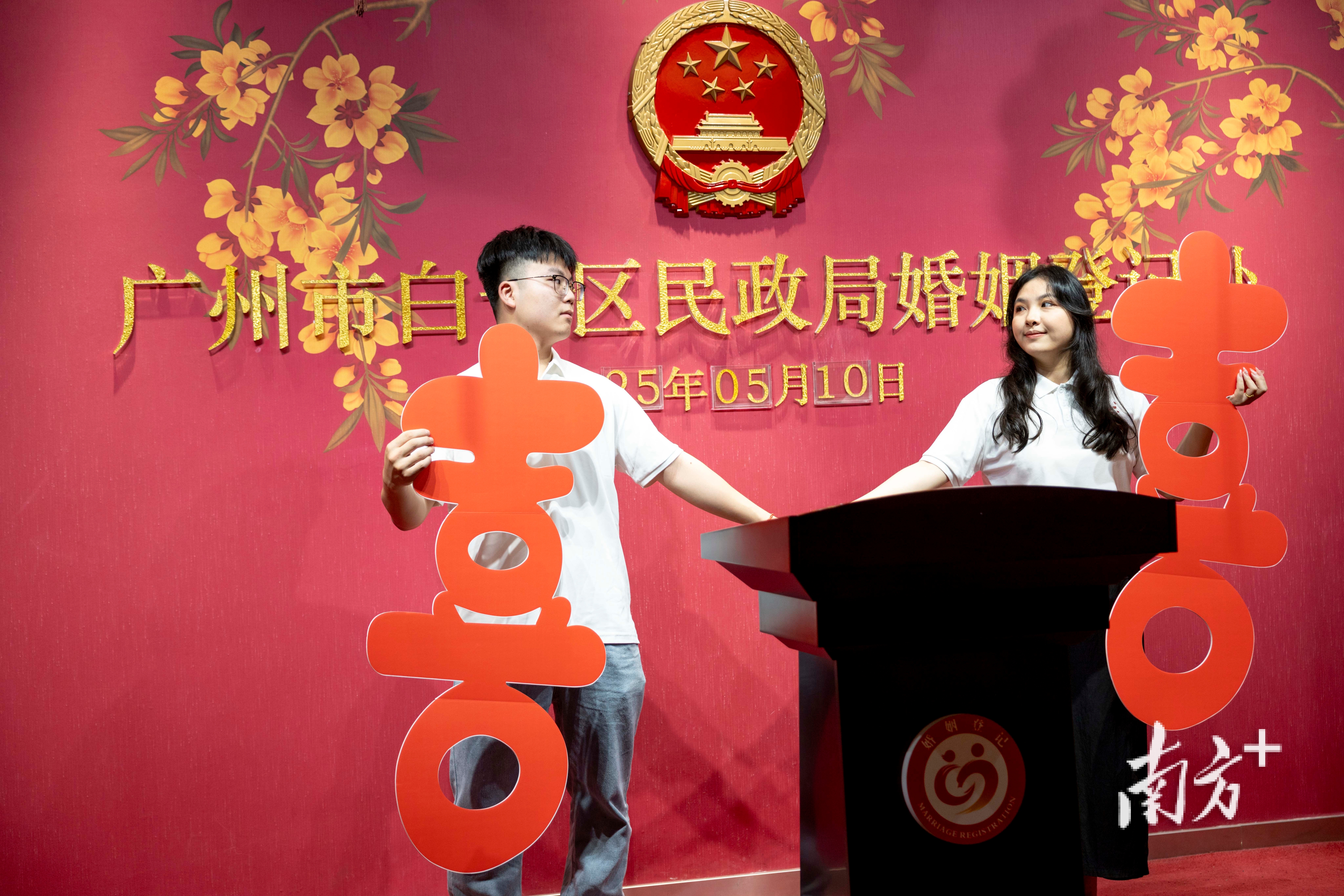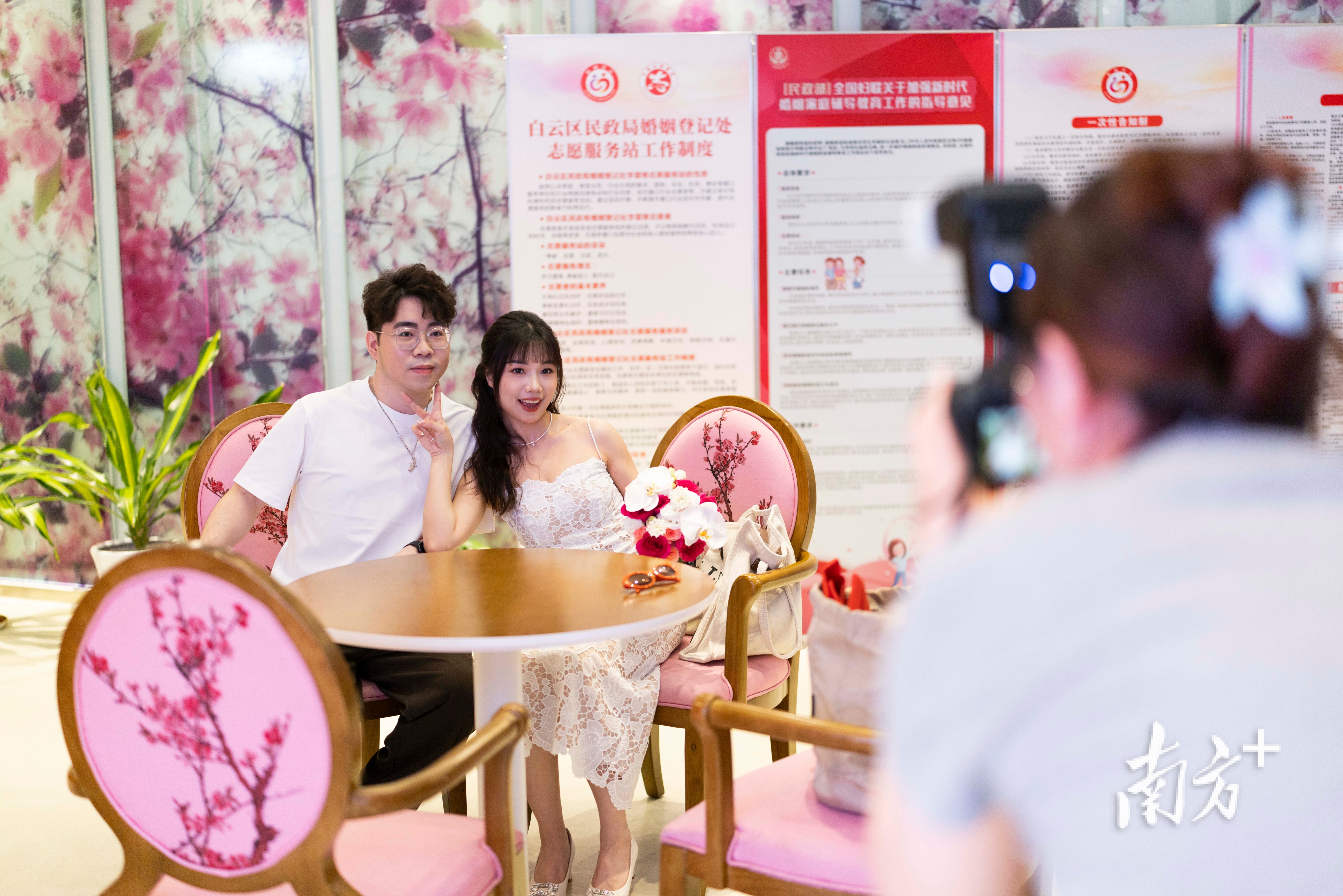 婚姻登记新规施行首日,不少新人来到广州市白云区民政局婚姻登记处领证。 南方+ 梁钜聪 拍摄