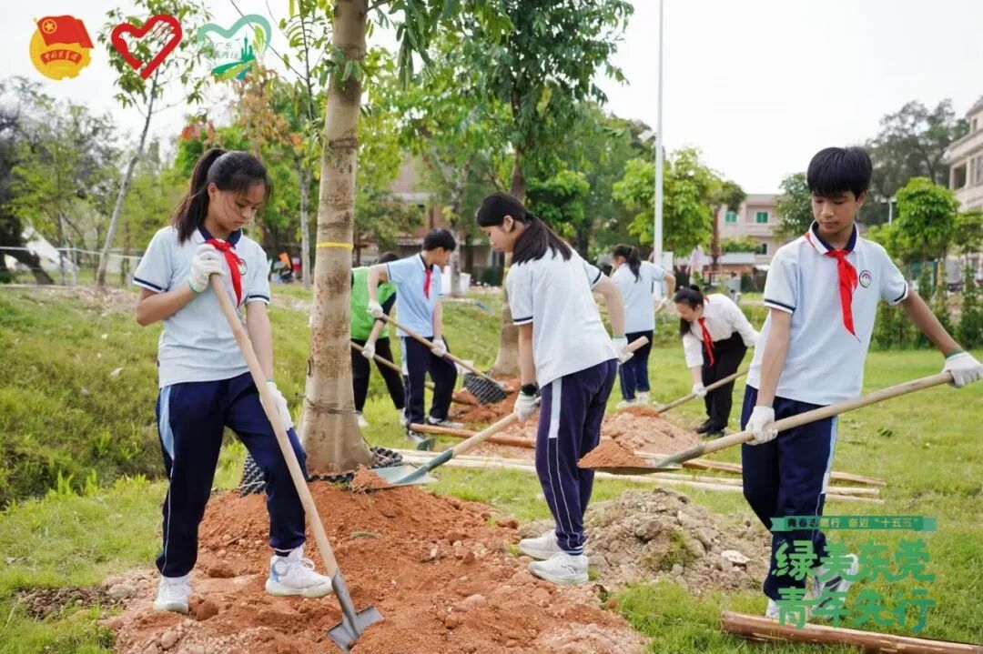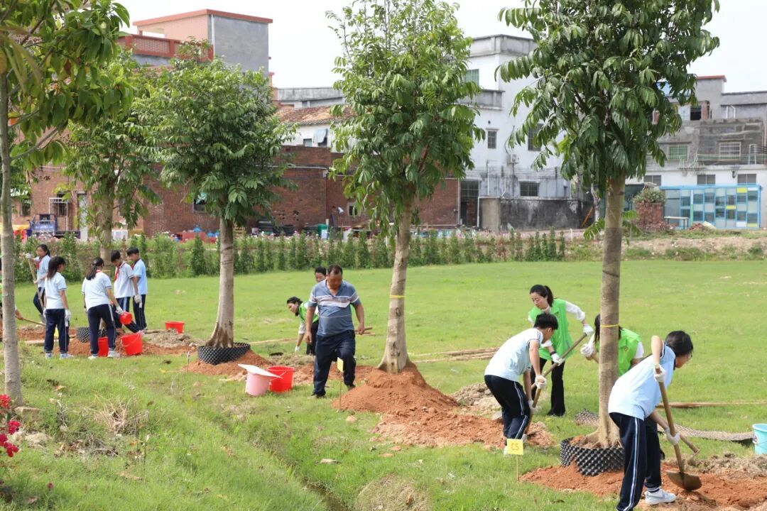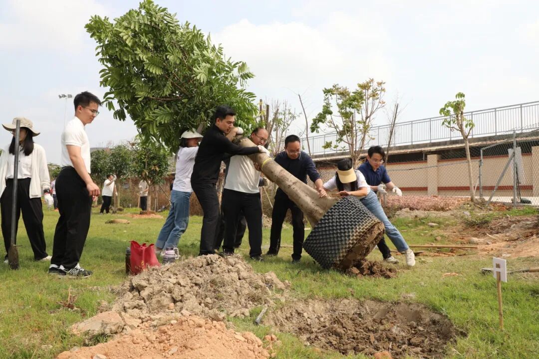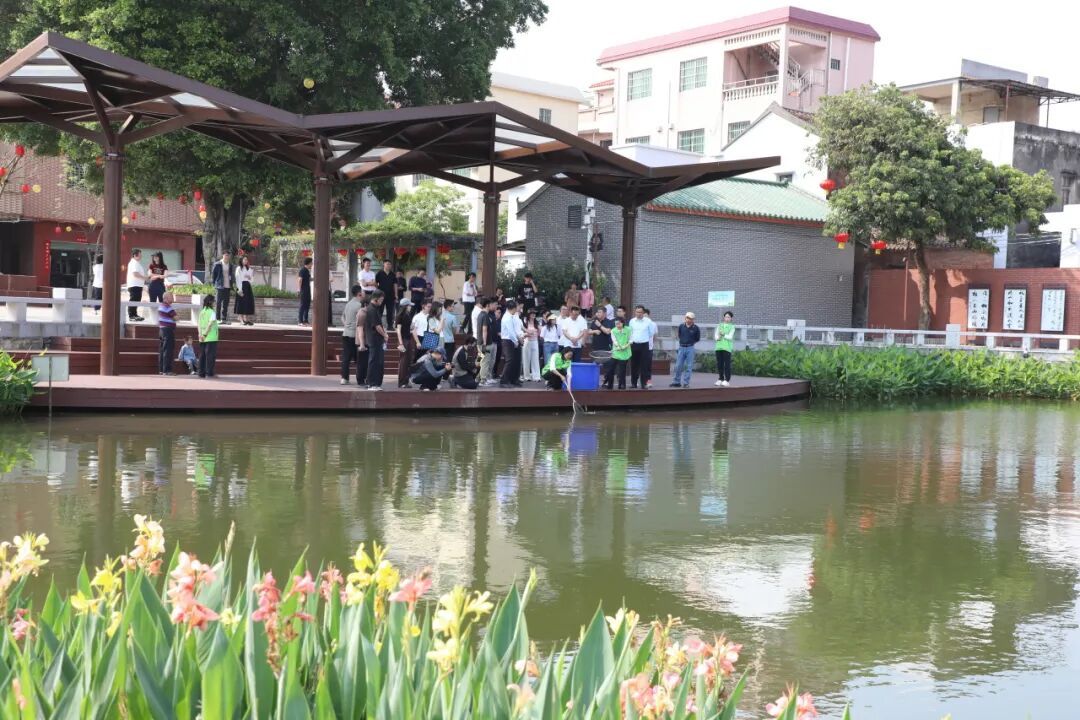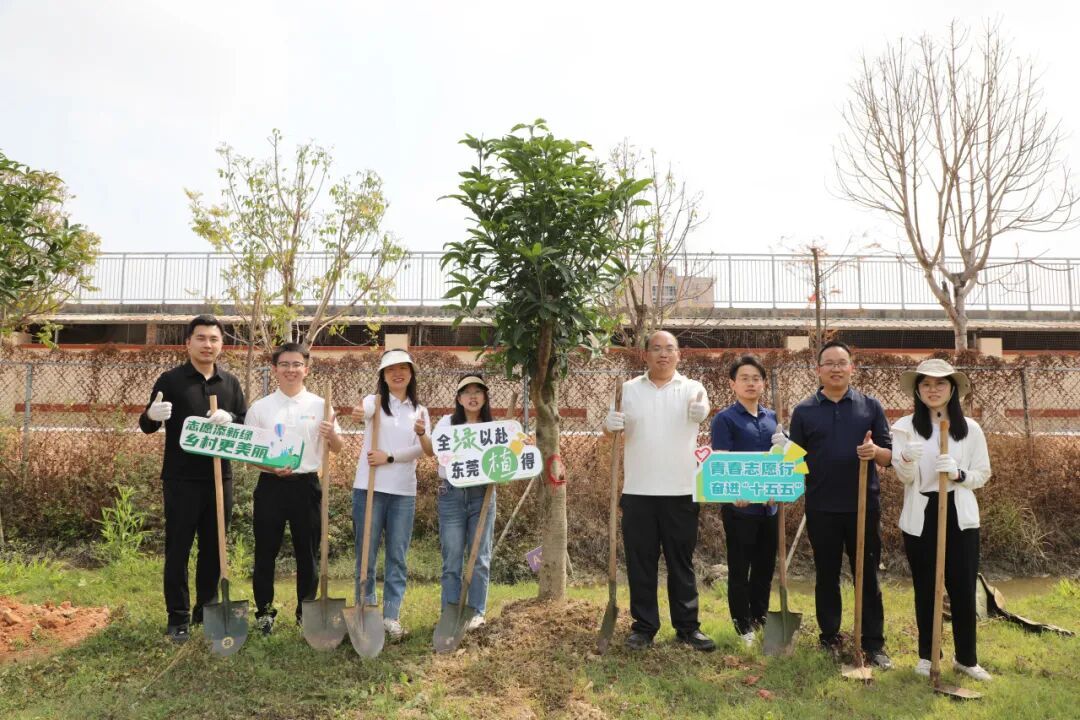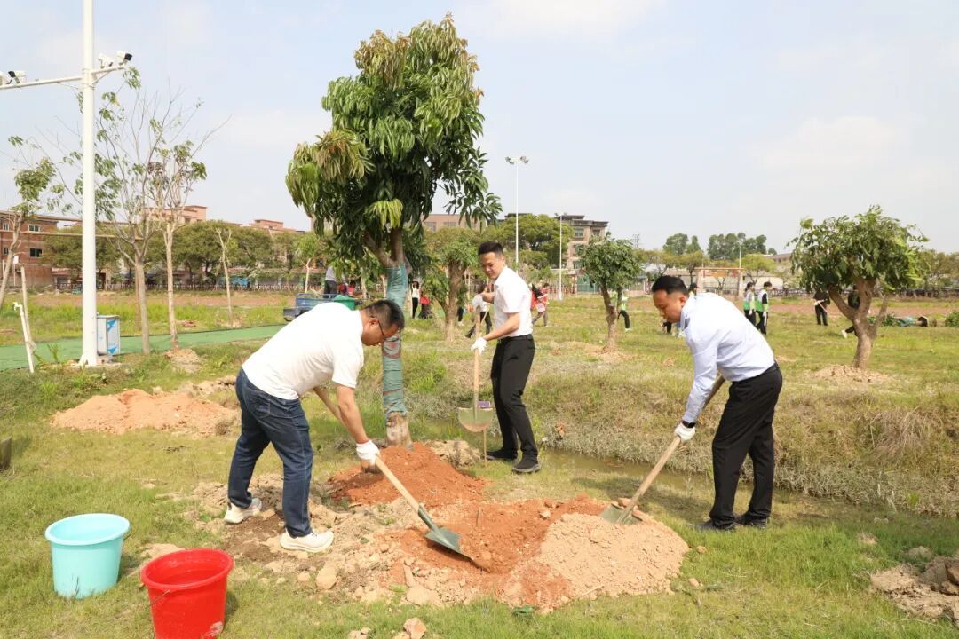 植树环节,青年代表以3—5人为组,有序开展“绿美青年林”植树。大家分工协作、默契配合,挥锹铲土、扶苗填坑、踏土夯实、提水浇灌,在池塘边合力种下人面子、荔枝、龙眼等约60棵树苗。新栽的树苗迎风挺立,与古村风貌相映成趣,既为乡村增添了蓬勃生机,也留下了青年助力绿美东莞建设的鲜活印记。
