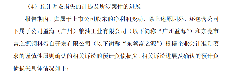 金龙鱼还表示,对于本次损失计提涉及的诉讼均为一审判决后根据企业会计准则要求的谨慎性原则进行的会计处理,尽管公司确认了预计负债损失,但公司及子公司不认可一审判决结果,子公司已提起上诉。目前一审判决未生效,案件在二审审理之中。