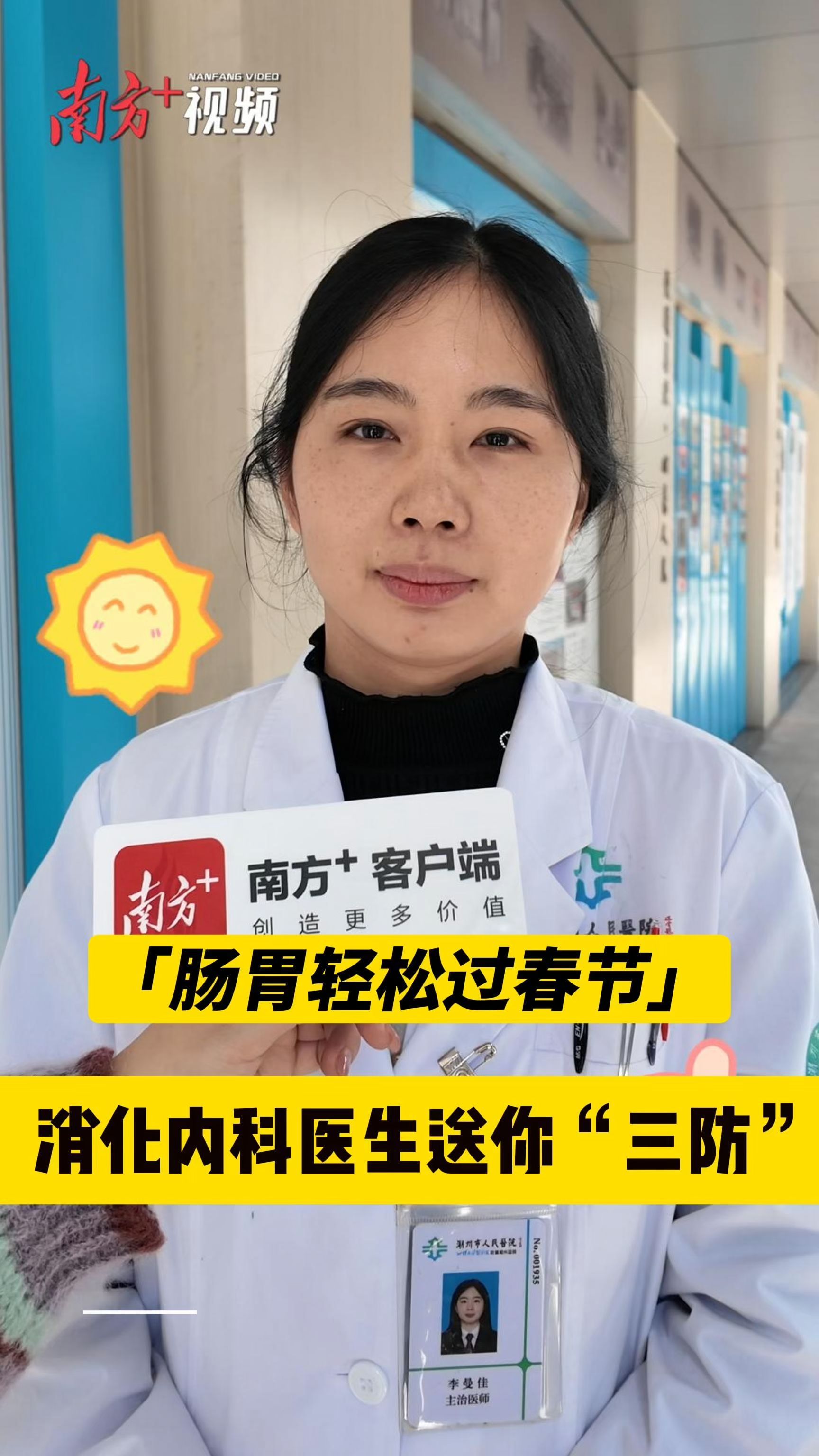 假期还剩后半程,团圆饭还在继续,怎么才能给肠胃“减减压”?南方+记者邀请潮州市人民医院消化内科主治医师李曼佳,为您送上“三防”锦囊——防积食、防旧病复发、防节后综合征。趁假期还没结束,赶紧调整起来,过好这个健康开心年。
