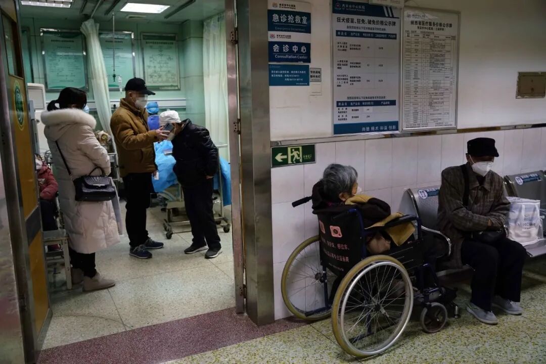 ▲2023年1月4日,西安市中心医院急诊科,一位老人陪同老伴儿在急诊抢救室外等床位 图/视觉中国