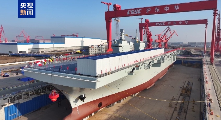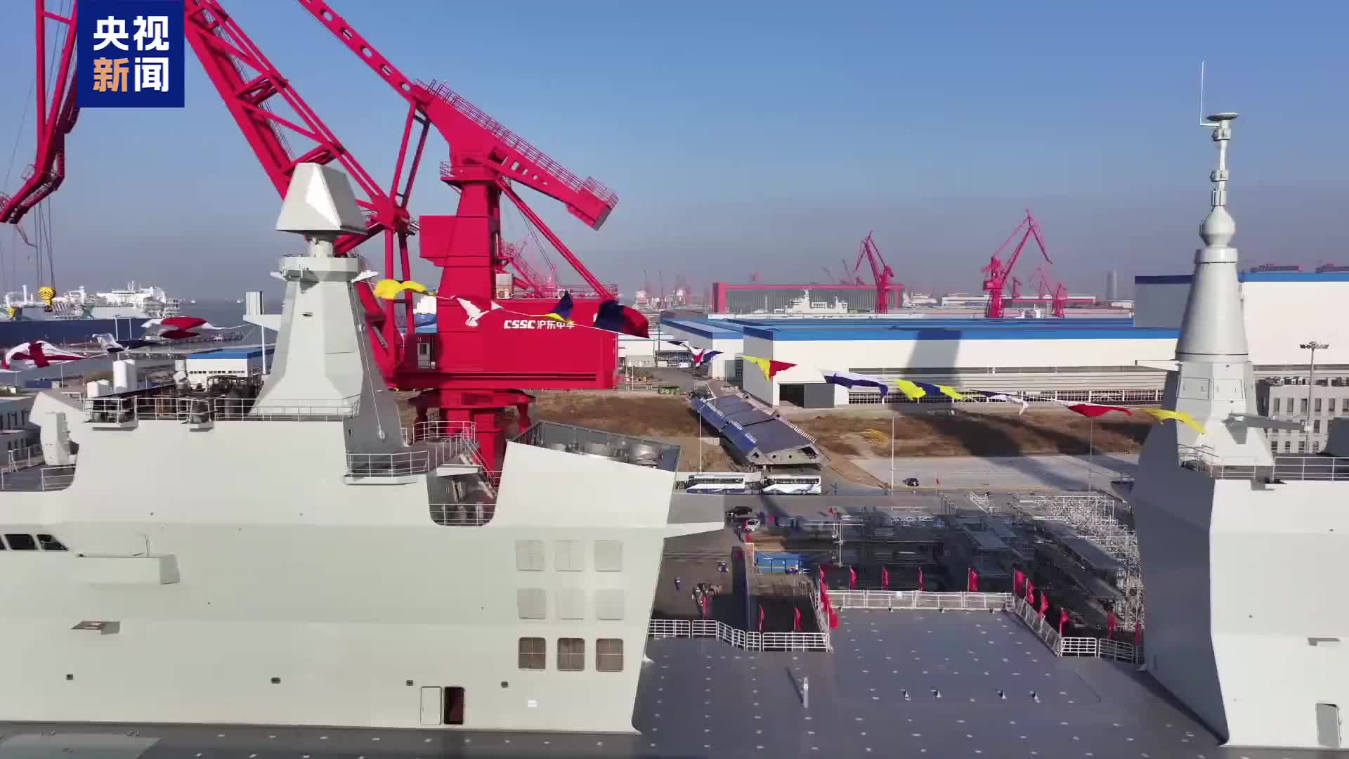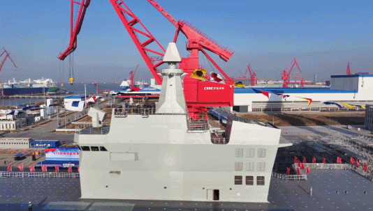 12月27日上午,由我国自主研制建造的076两栖攻击舰首舰下水命名仪式在上海沪东中华造船厂举行。