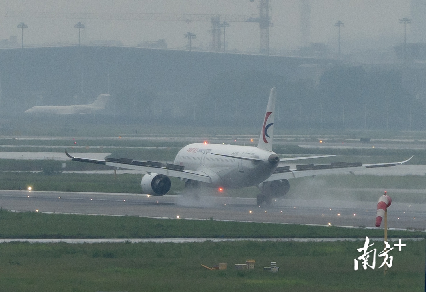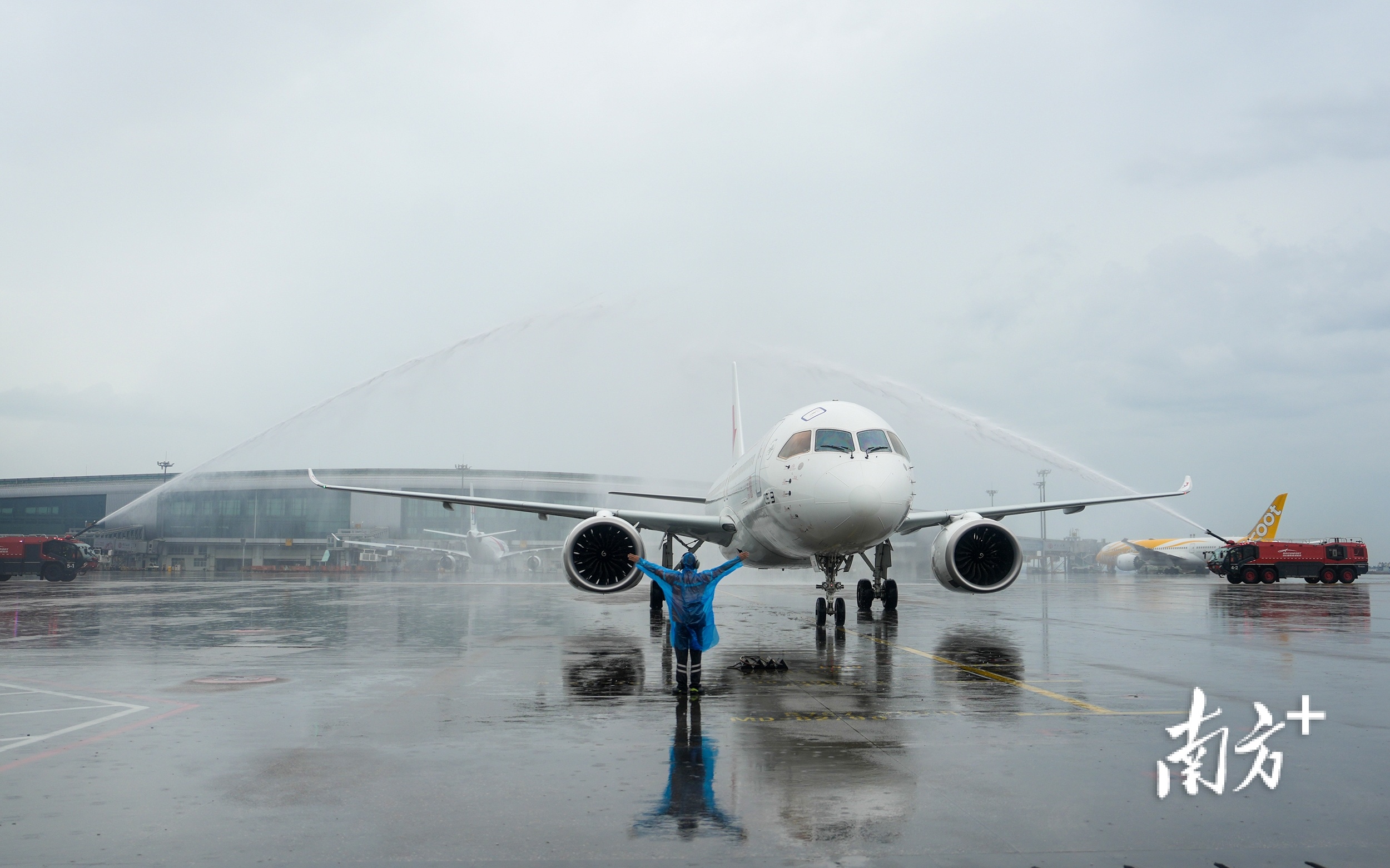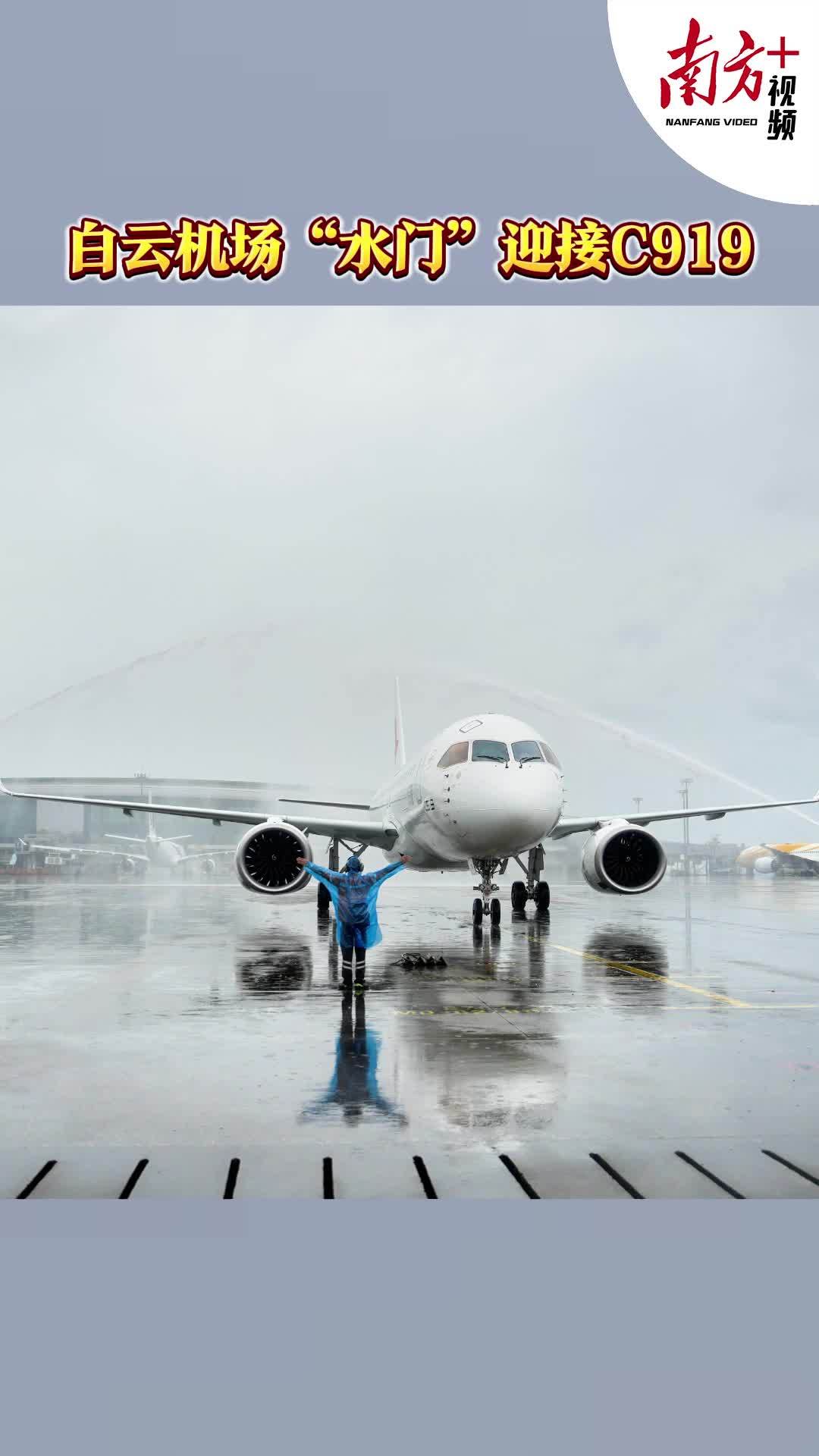 6月14日11点40分左右,东航全球首架C919客机执行的MU5309航班抵达广州白云机场。