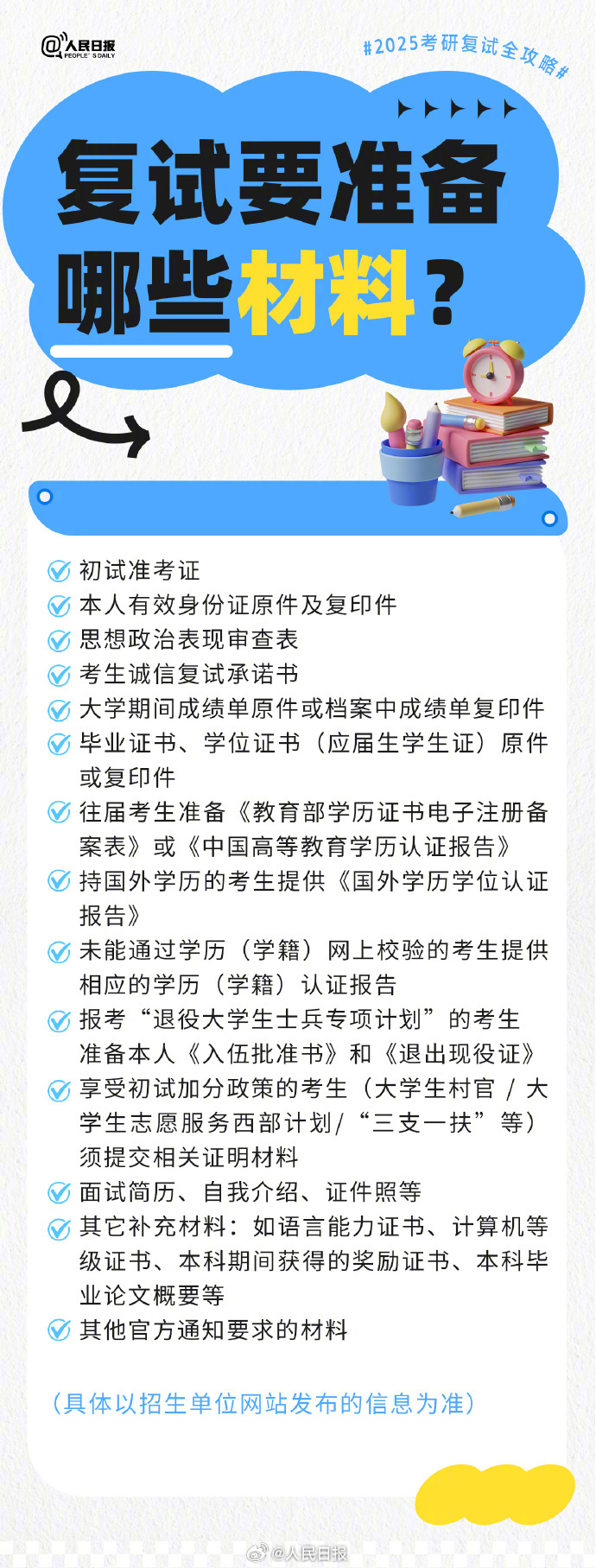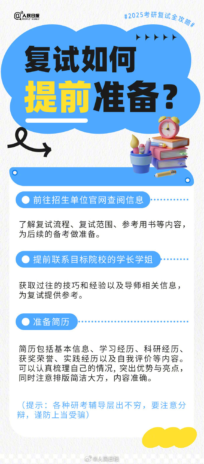 今天起,2025考研初试成绩陆续公布。你查到成绩了吗?对于很多人来说,接下来就要准备复试考试了。复试具体考什么?流程如何安排?迎接毕业季,后续规划怎么做?戳实用攻略↓↓祝你如愿以偿,一战成“硕”! 编辑 刘婷婷 订阅后可查看全文(剩余80%)