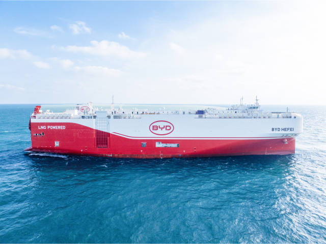 开门红,比亚迪7000车双燃料汽车运输船在广州南沙交付